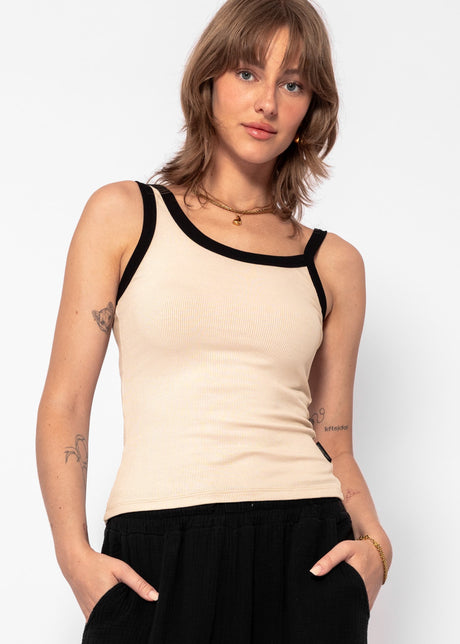 24,95€Unit price /UnavailableAsymmetric tank top with black panels - beige