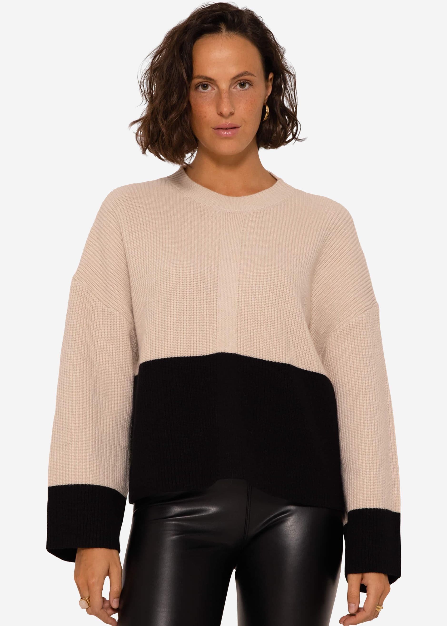This sweater is crafted from high-quality knitwear with attention to detail. It features wide sleeves, dropped shoulders, and an oversized fit for a casual look. The standout feature of this sweater is its two-tone design, which adds visual appeal and makes a fashion statement. A ribbed crew neck adds a classic, timeless touch. Wear it effortlessly with your favorite jeans or leggings for everyday wear.