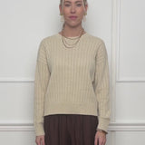 Feinstrickpullover mit strukturierten Streifen in Beige