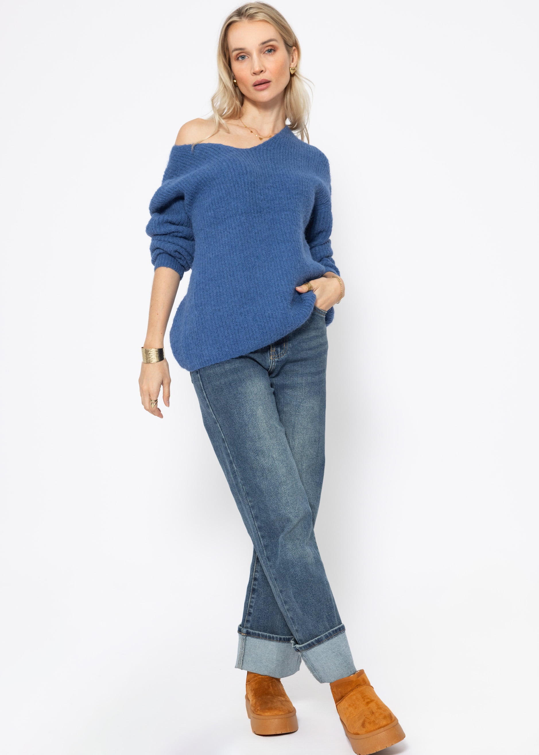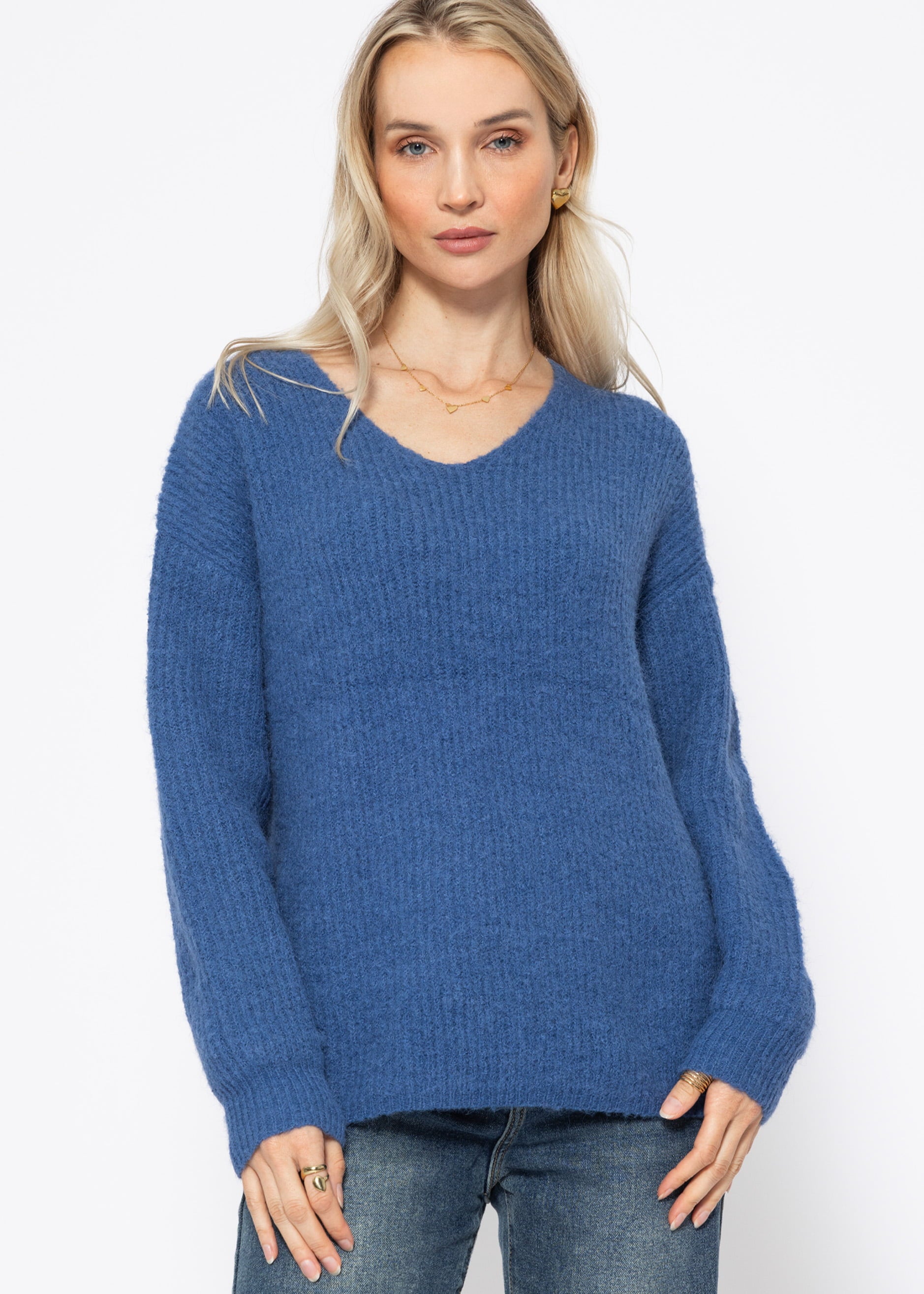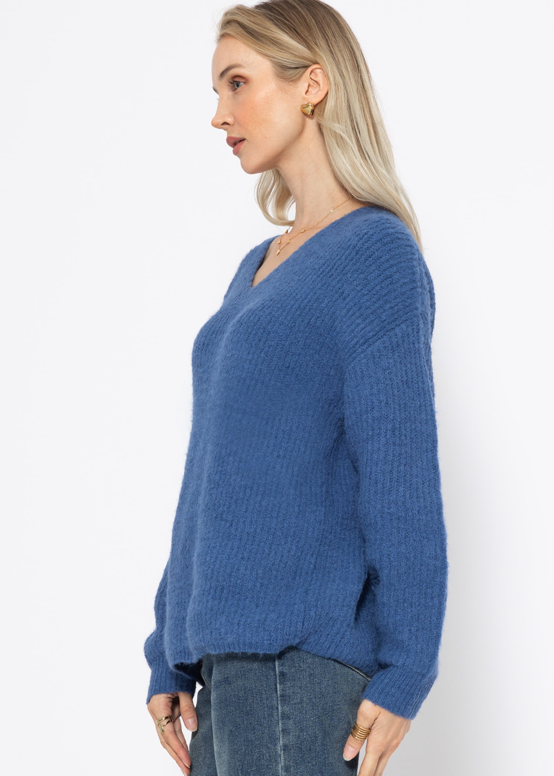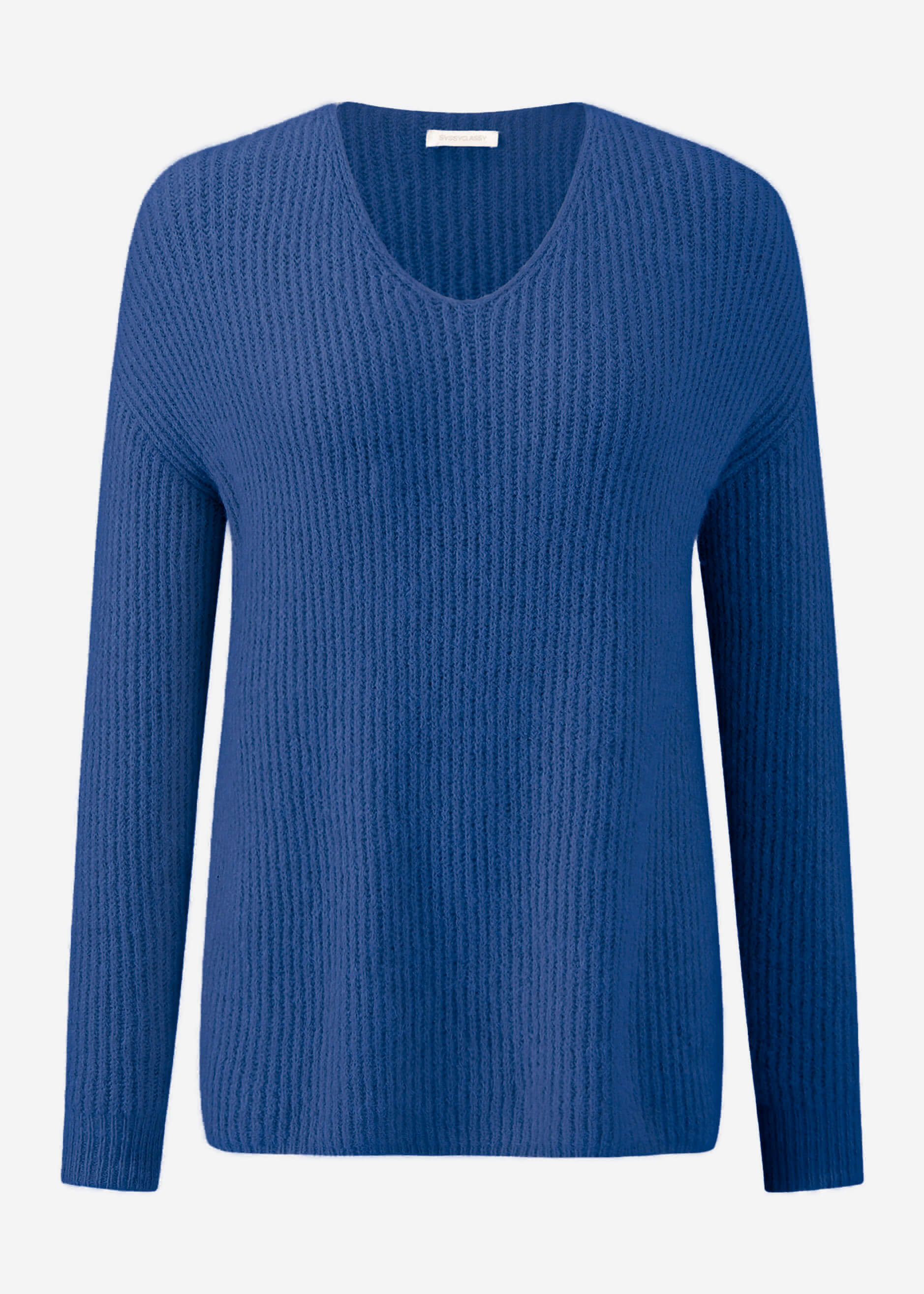 Gerippter Pullover mit V-Ausschnitt in Blau