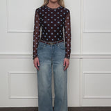 Mesh Langarmshirt mit großen Punkten in Braun und Blau