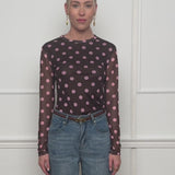 Mesh Langarmshirt mit großen Punkten - braun-rosa
