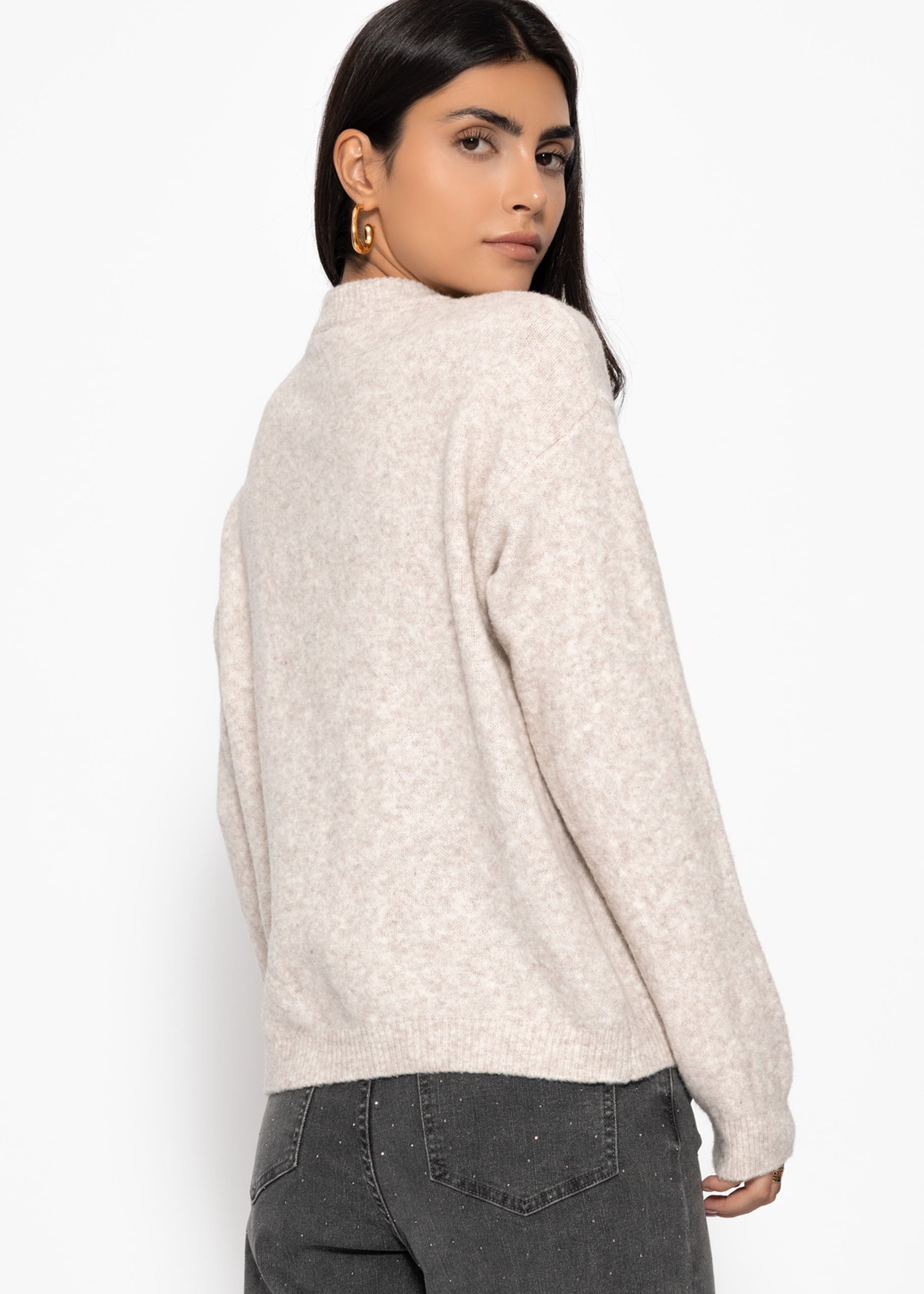 Co-Creation anna___braun x SASSYCLASSY: Strickjacke mit aufgesetzten Taschen in Greige