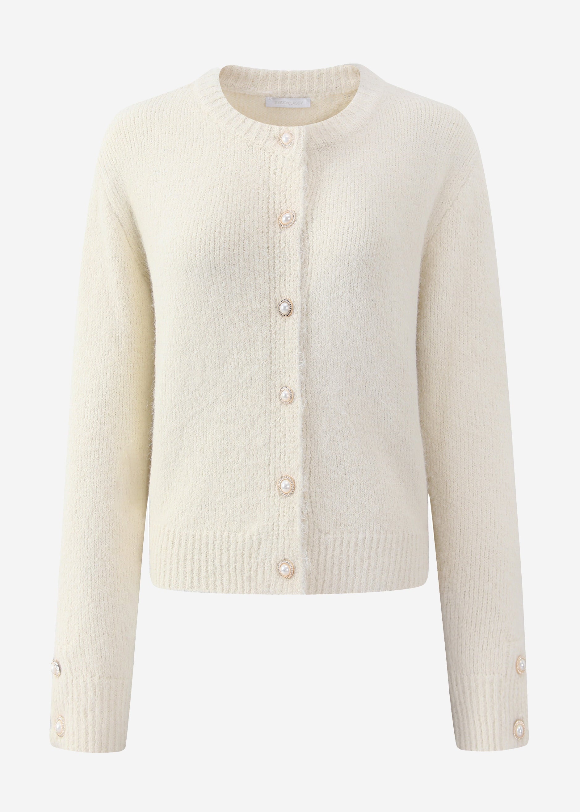 Dieser leicht locker geschnittene Cardigan verbindet lässigen Tragekomfort mit eleganten Akzenten. Er ist aus weichem, flauschigem Strick gefertigt und bietet ein angenehmes Gefühl auf der Haut sowie eine entspannte Silhouette. Die edlen Perlenknöpfe an den Manschetten und entlang der Vorderseite sind ein besonderer Blickfang und verleihen dem Design eine luxuriöse Note. Dank seines klassischen Rundhalsausschnitts und seiner vielseitigen Kombinierbarkeit ist er sowohl für den Alltag als auch für besondere Anlässe die perfekte Wahl.