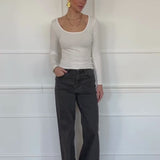 Langarmshirt mit Ausschnitt - offwhite