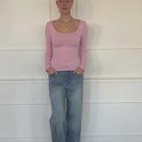 Langarmshirt mit Ausschnitt in Rosa