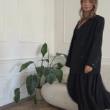 Langer schwarzer Chiffonrock mit fließendem Fall. Leicht transparentes Obermaterial mit blickdichtem Futter und elastischem Bund für eine feminine Silhouette.