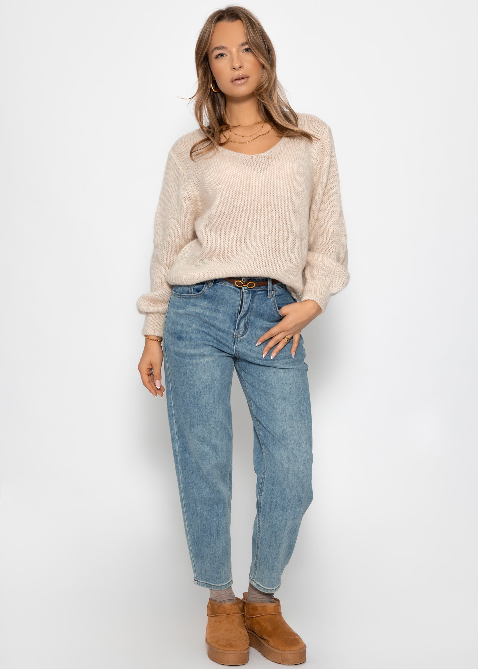 Pullover mit V-Ausschnitt - beige