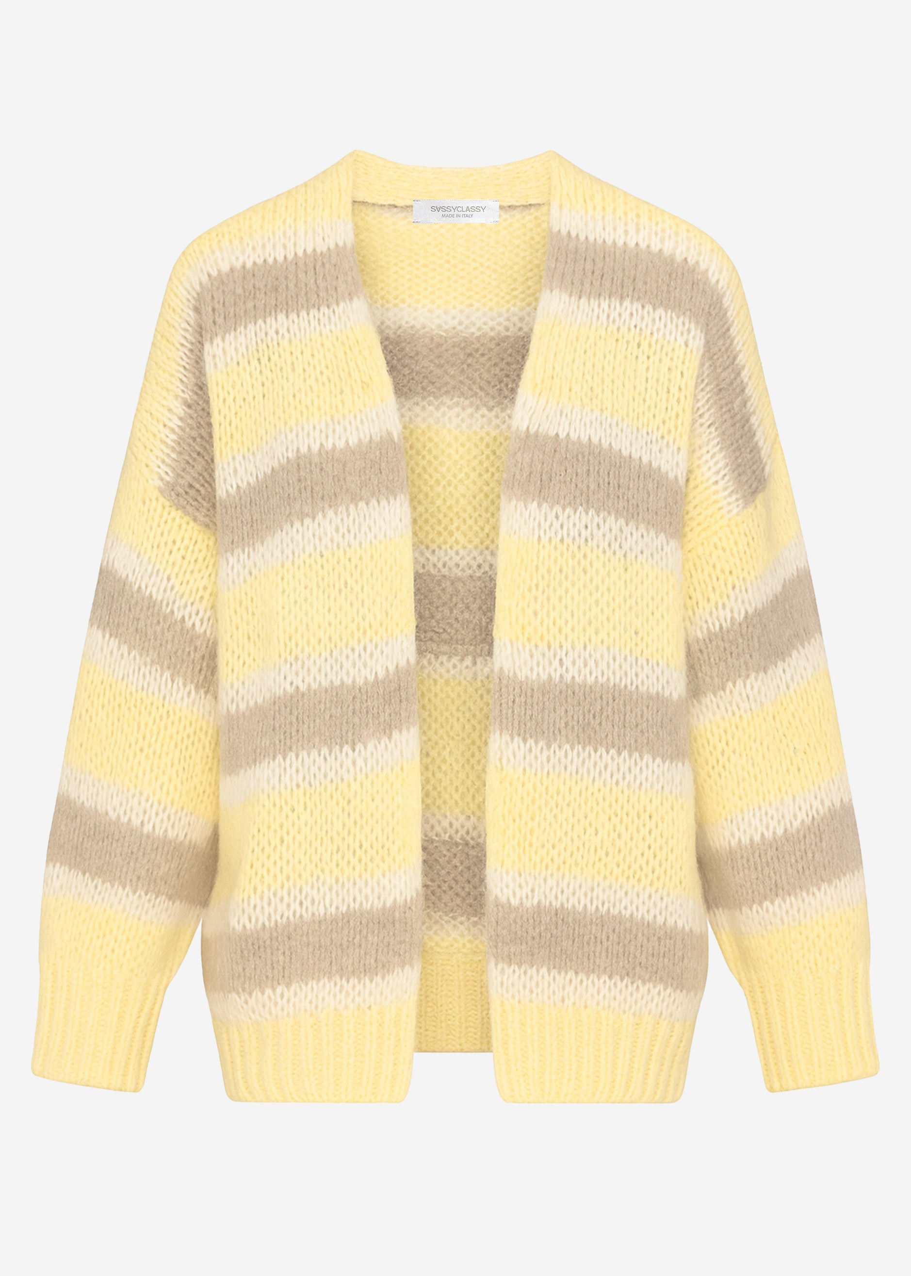 Grobstrick-Cardigan mit breiten Streifen und offener Front. Lockerer Oversize-Schnitt mit tief angesetzten Schultern für einen lässigen Fall. Weicher Grobstrick sorgt für einen gemütlichen Look.