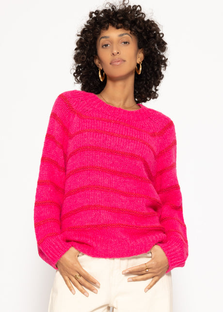 Gestreifter Pullover mit Rundhalsausschnitt - pink