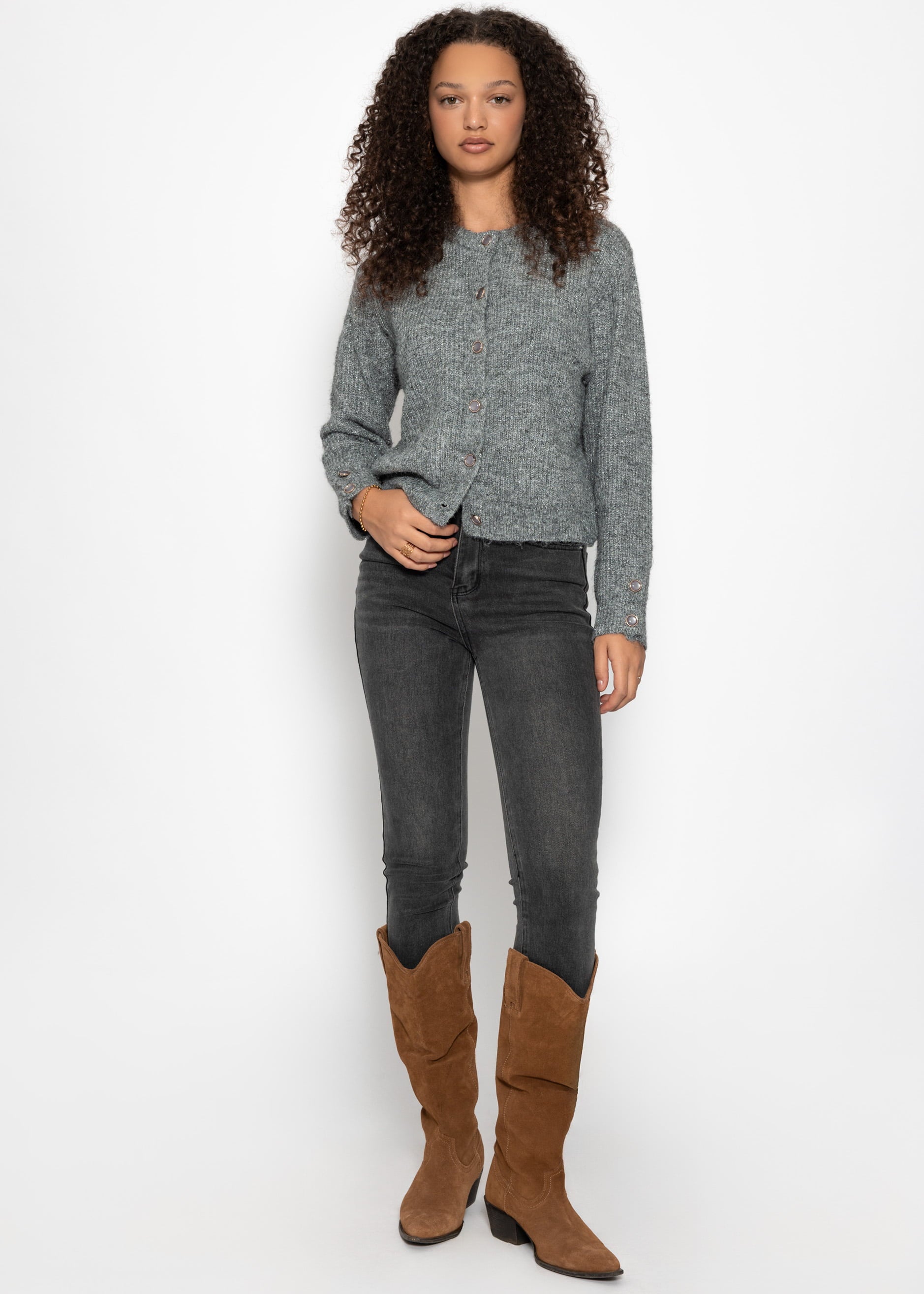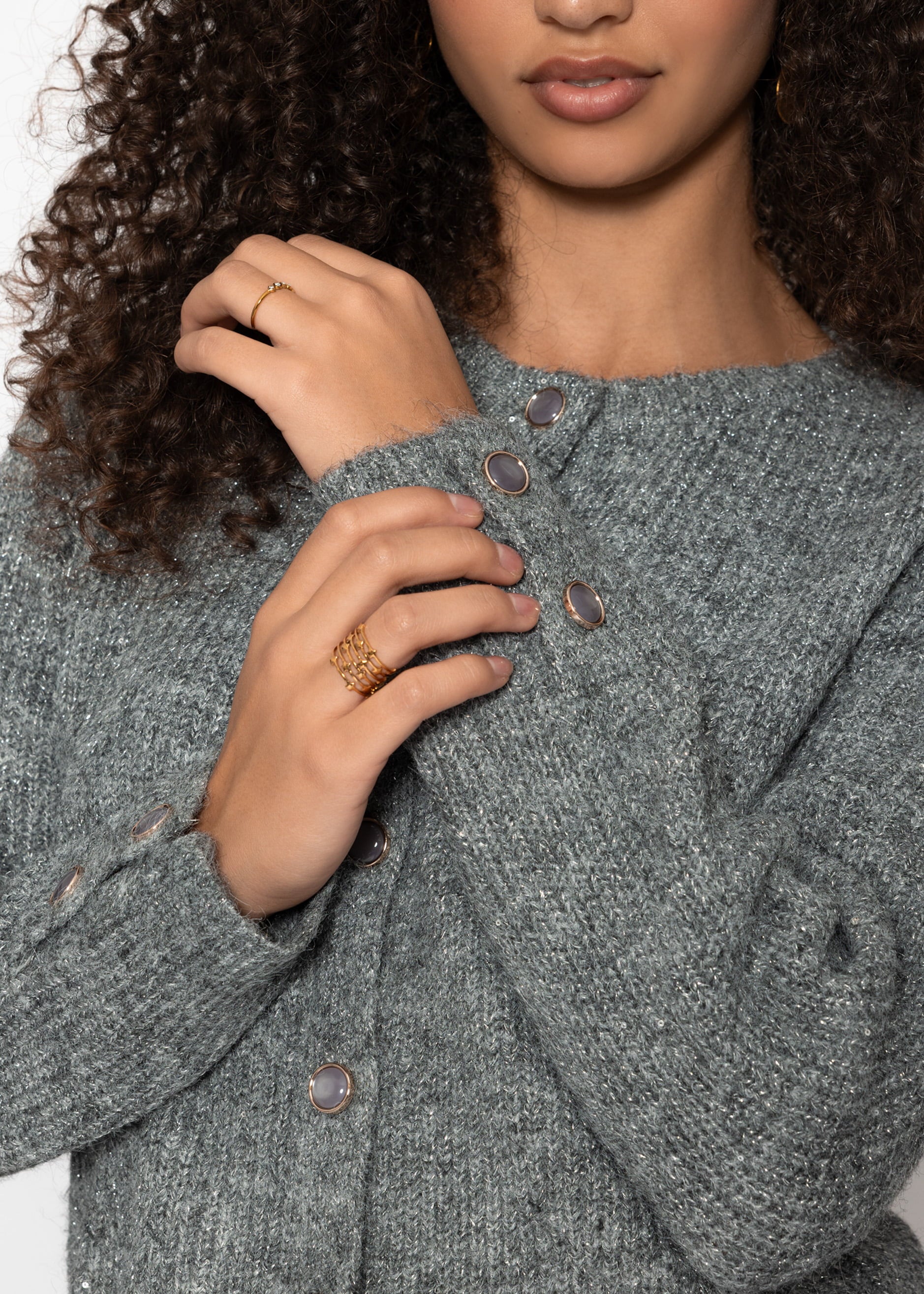 Dieser locker geschnittene Cardigan aus weichem, geripptem Strick hat eine dezente Struktur. Zarte Pailletten und edle Knöpfe runden das stilvolle Design ab.