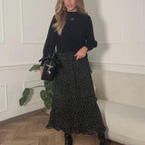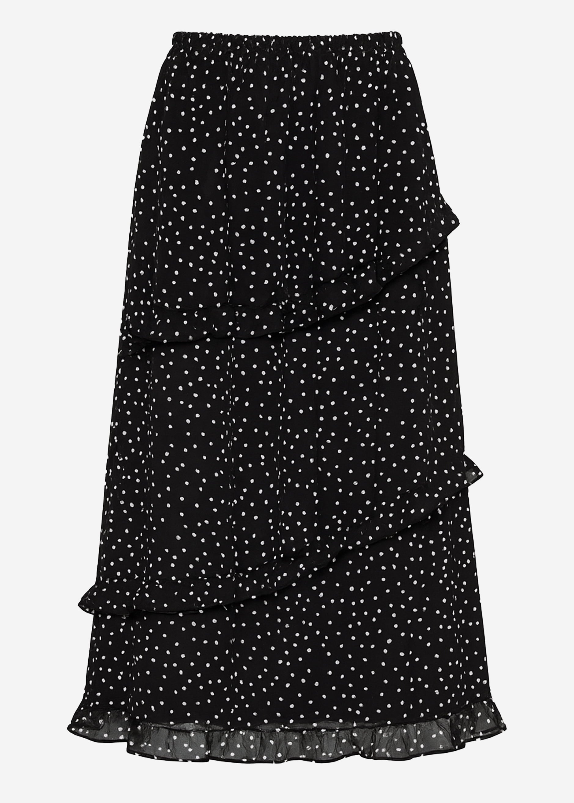 Gepunkteter langer Chiffon Rock mit Rüschen - schwarz