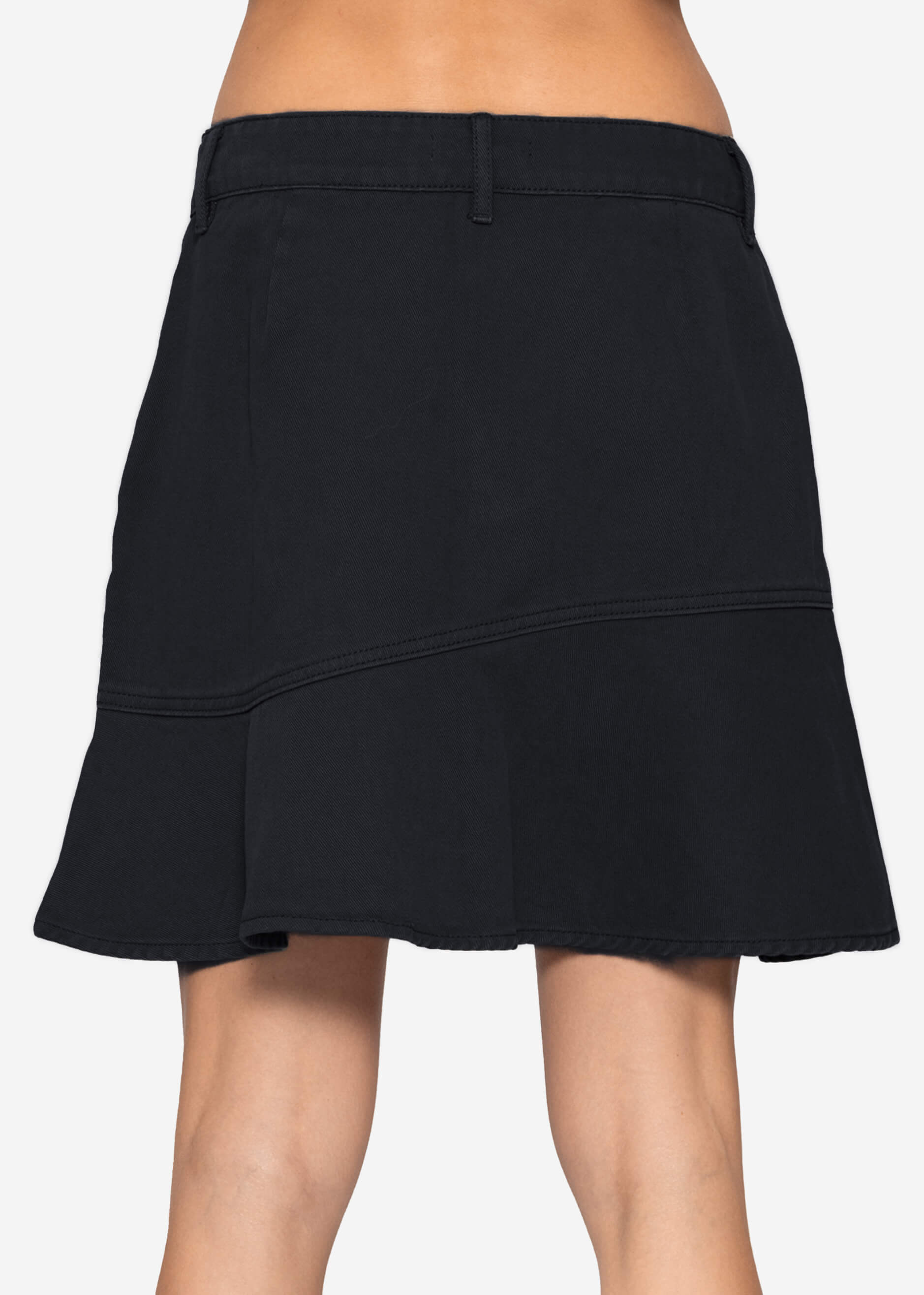 Dieser Jeansrock verbindet klassische Denim-Elemente mit einer femininen Silhouette. Durch die leicht ausgestellte Form und die geschwungene Teilungsnaht erhält er eine besonders schmeichelhafte Passform mit modernem Twist. Das Modell sitzt bequem auf der Hüfte, lässt sich dank Gürtelschlaufen individuell stylen und wird mit Knopf und Reißverschluss geschlossen. Praktische Taschen im Five-Pocket-Stil runden das Design ab. Ob sportlich mit Sneakern oder schick mit Bluse und Sandalen – dieser Jeansrock ist ein unkomplizierter Allrounder für jeden Tag und jede Jahreszeit.