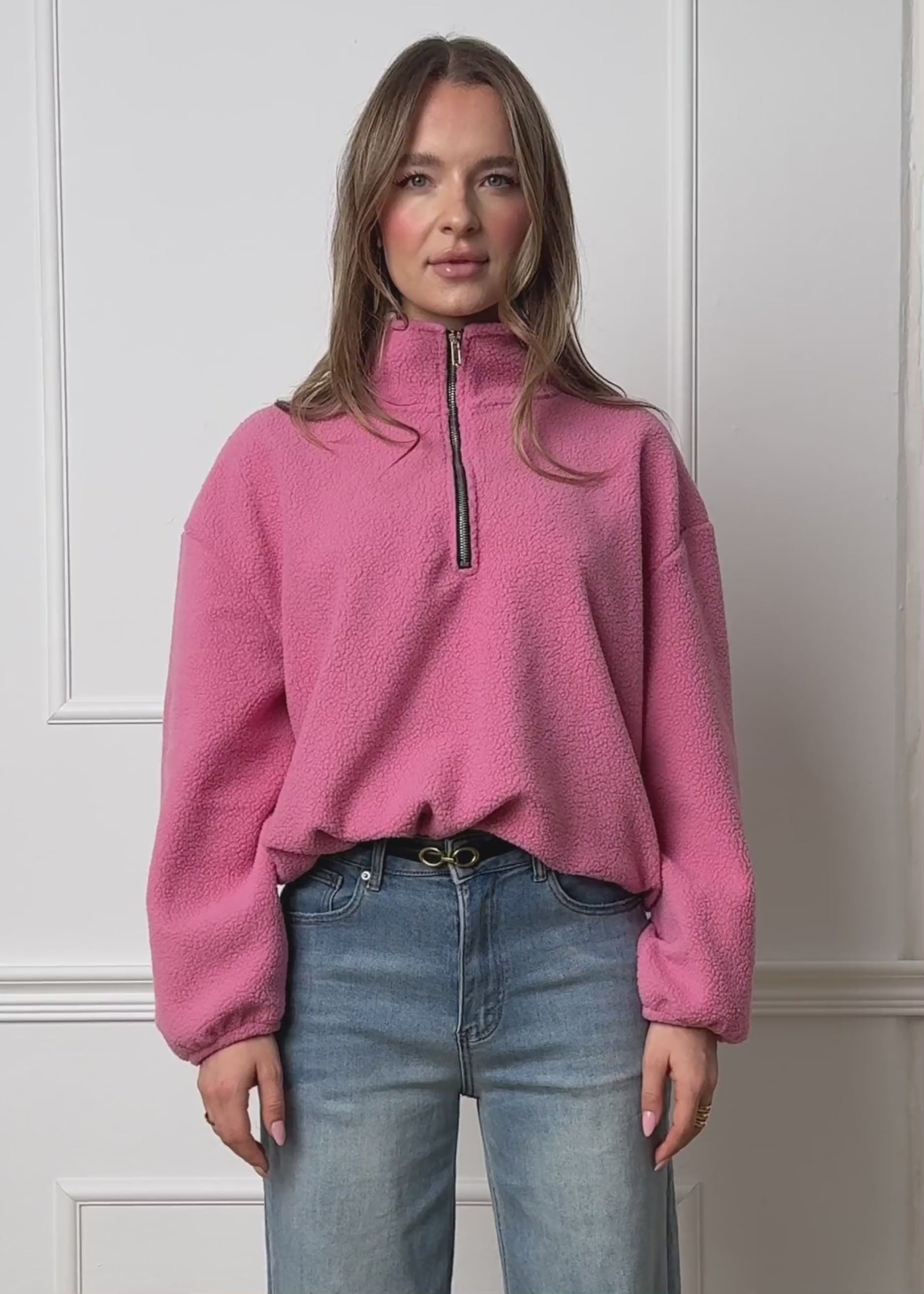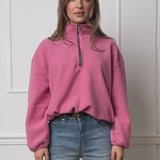 Oversize Fleece Sweatshirt mit Reißverschluss - rosa