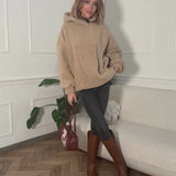 Das Oversize Teddy Sweatshirt mit Kapuze in Beige bietet ultimativen Komfort. Es verfügt über praktische Taschen.