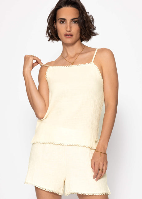 39,95€Grundpreis /Nicht verfügbarMusselin Pyjamatop mit Spitzenborte - buttergelb