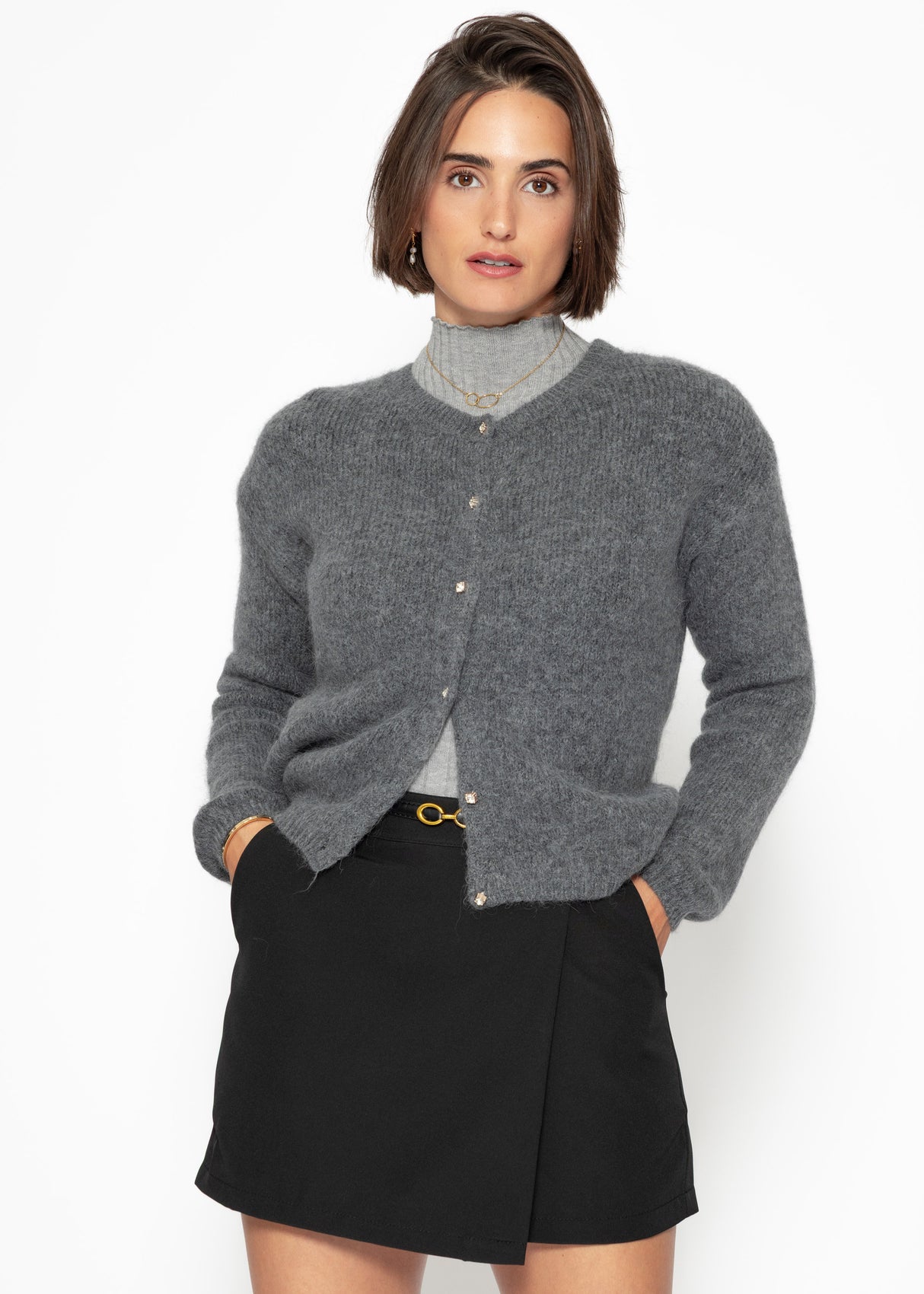 Weicher Strickcardigan mit Zierknöpfen - grau