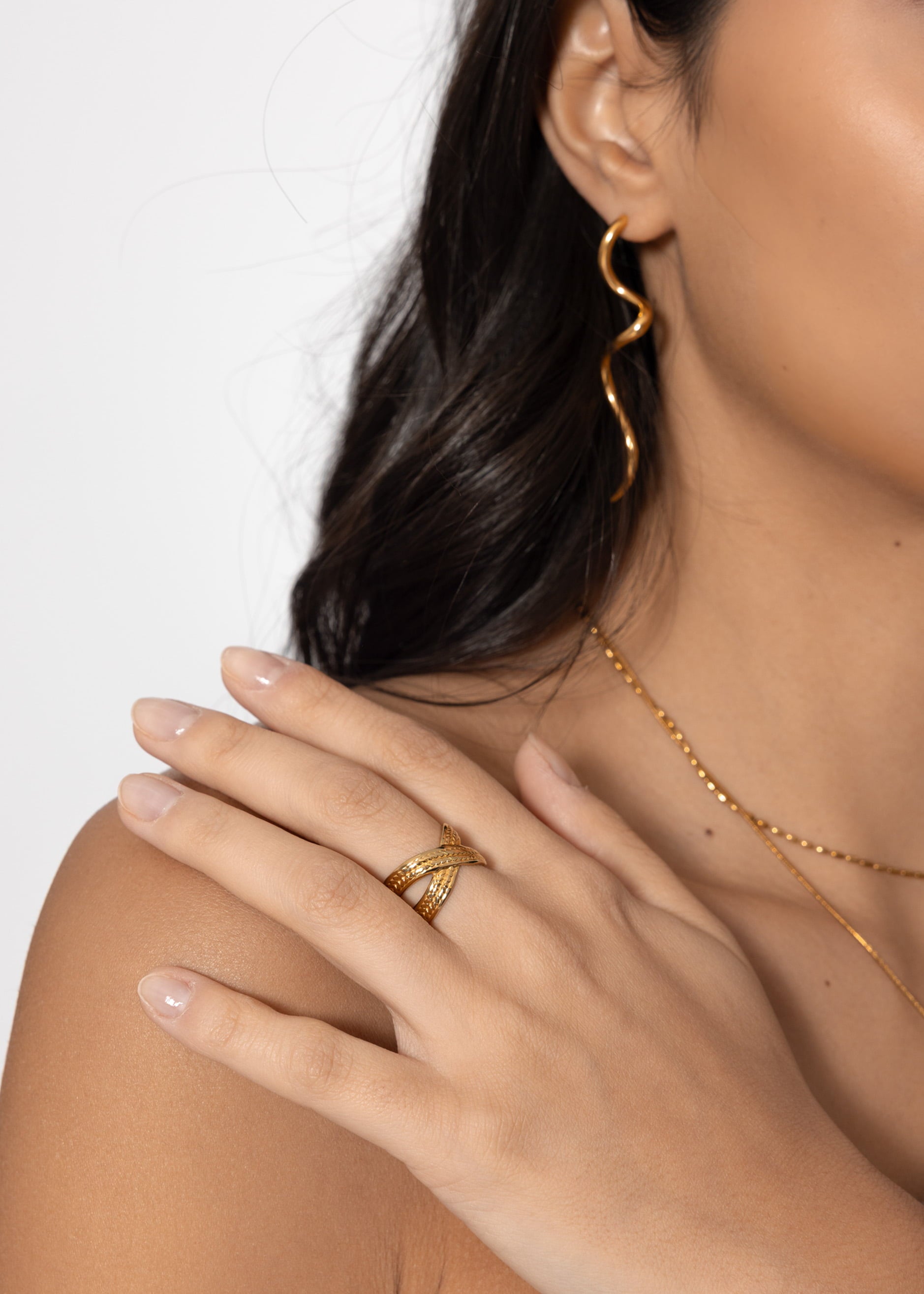 Überkreuzter Ring mit Textur in Gold