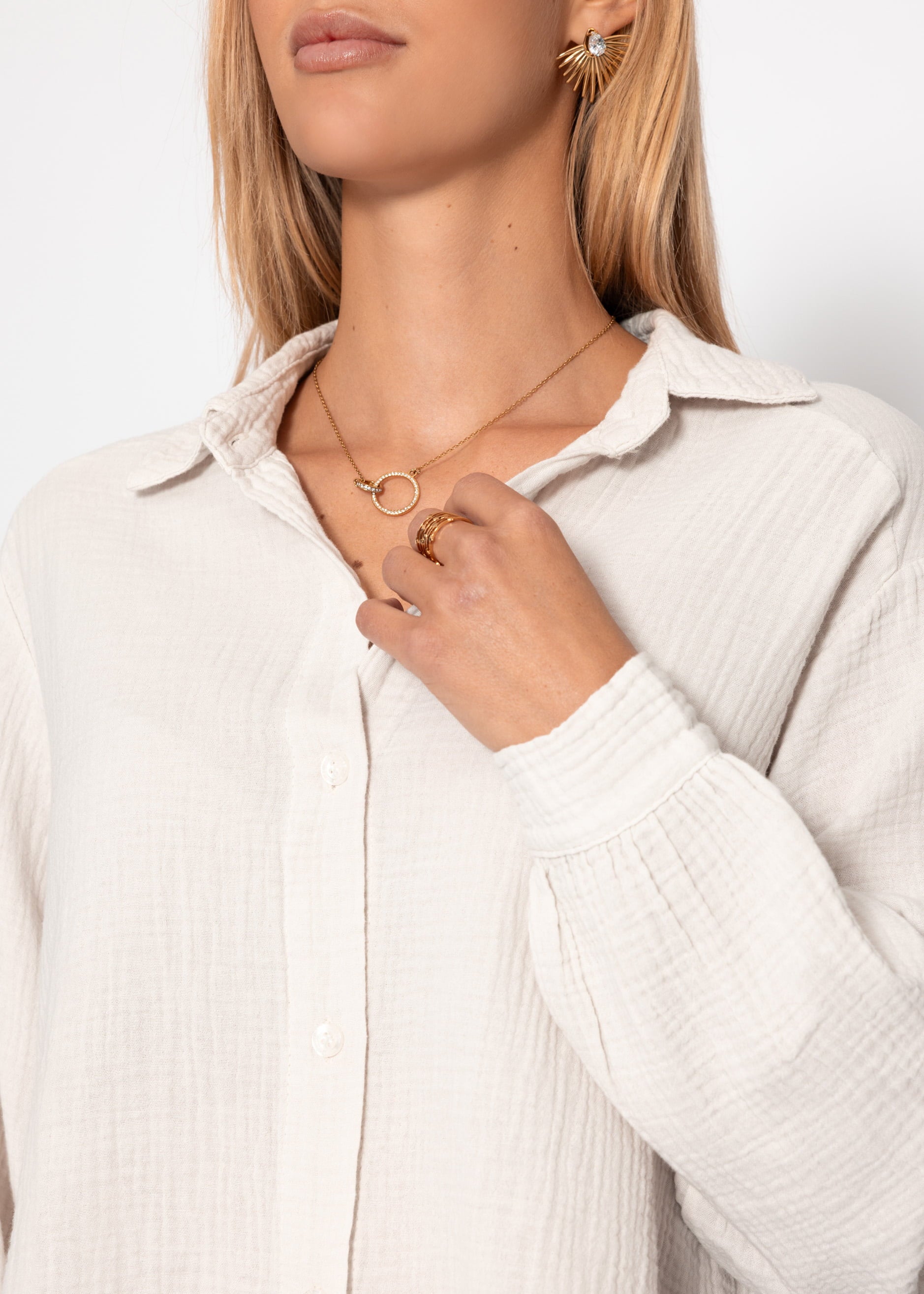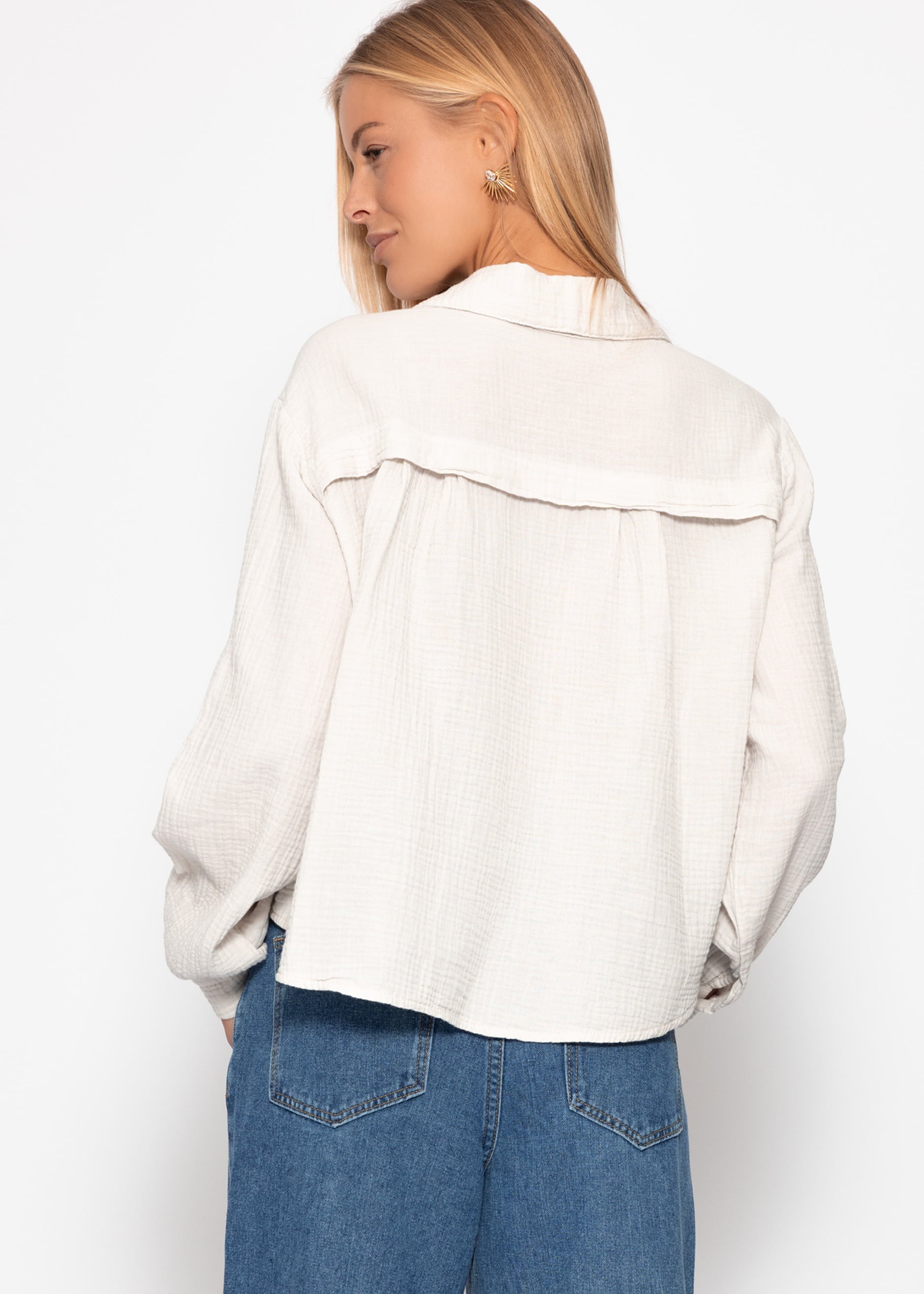 Kurze oversize Musselin Bluse - hellbeige