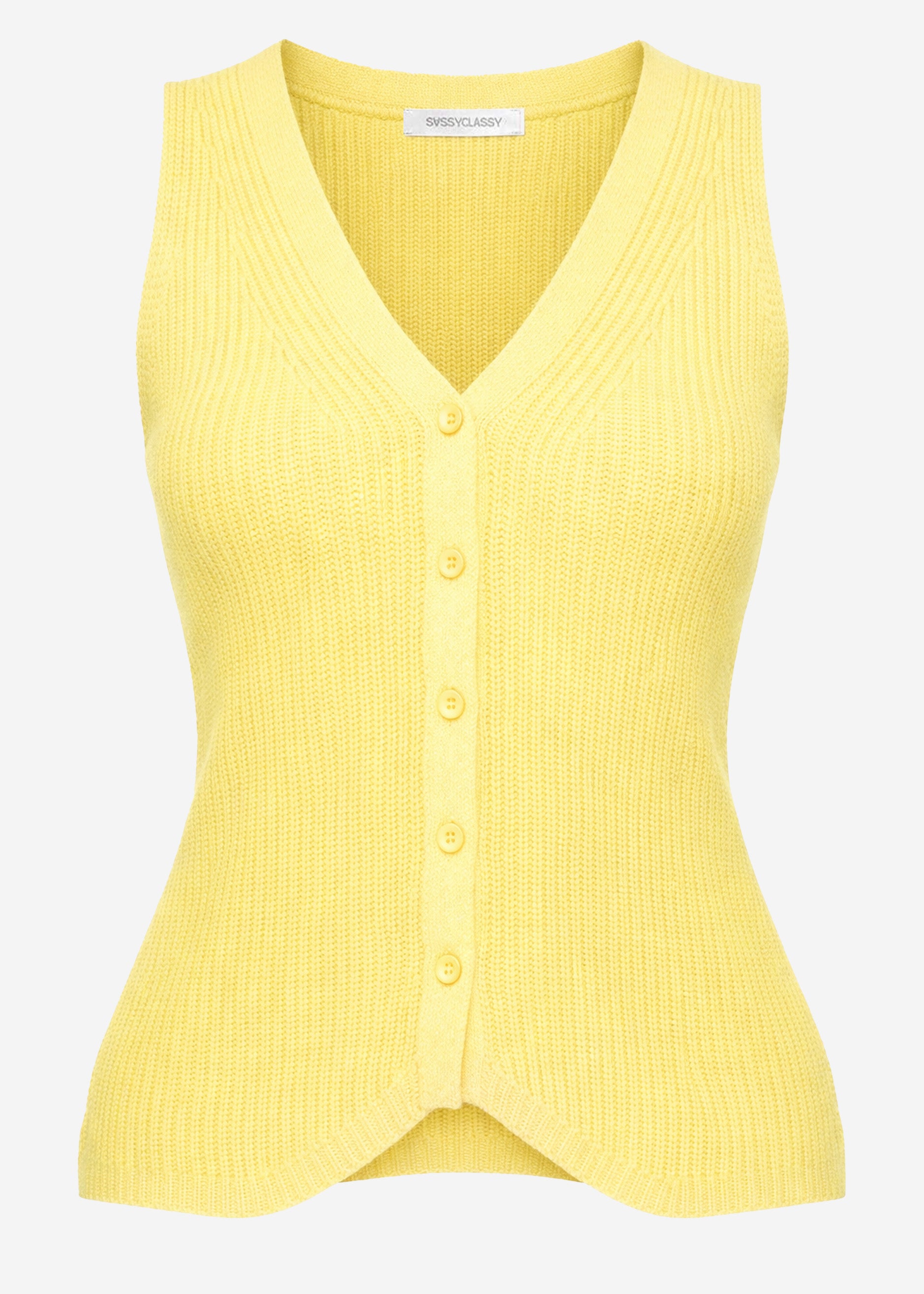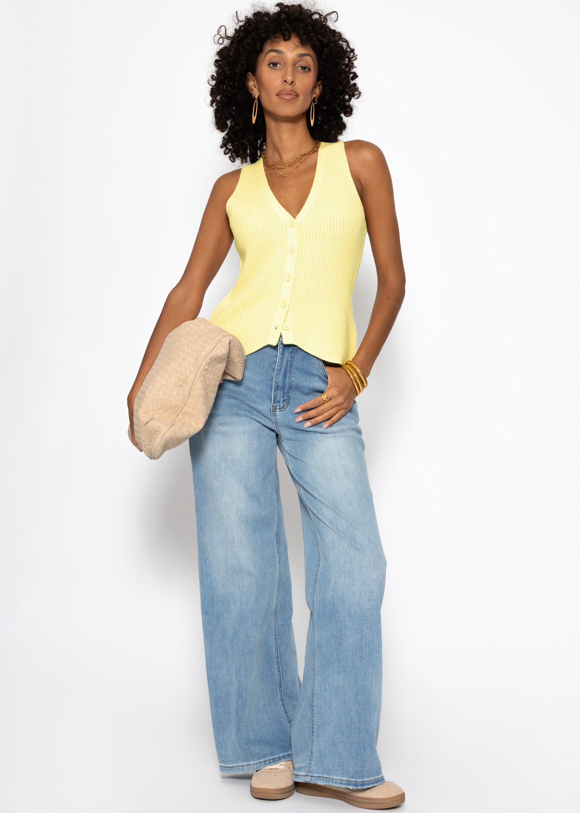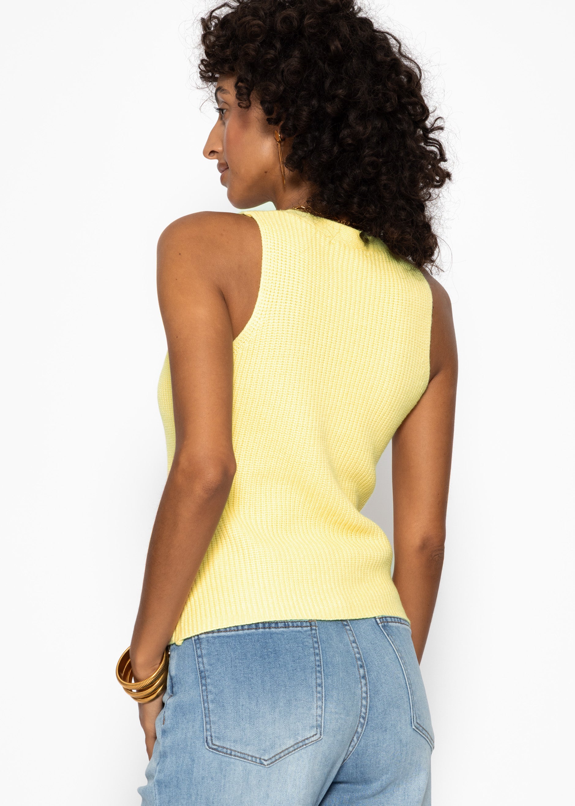 Strick-Top mit Knopfleiste und tiefem V-Ausschnitt - buttergelb