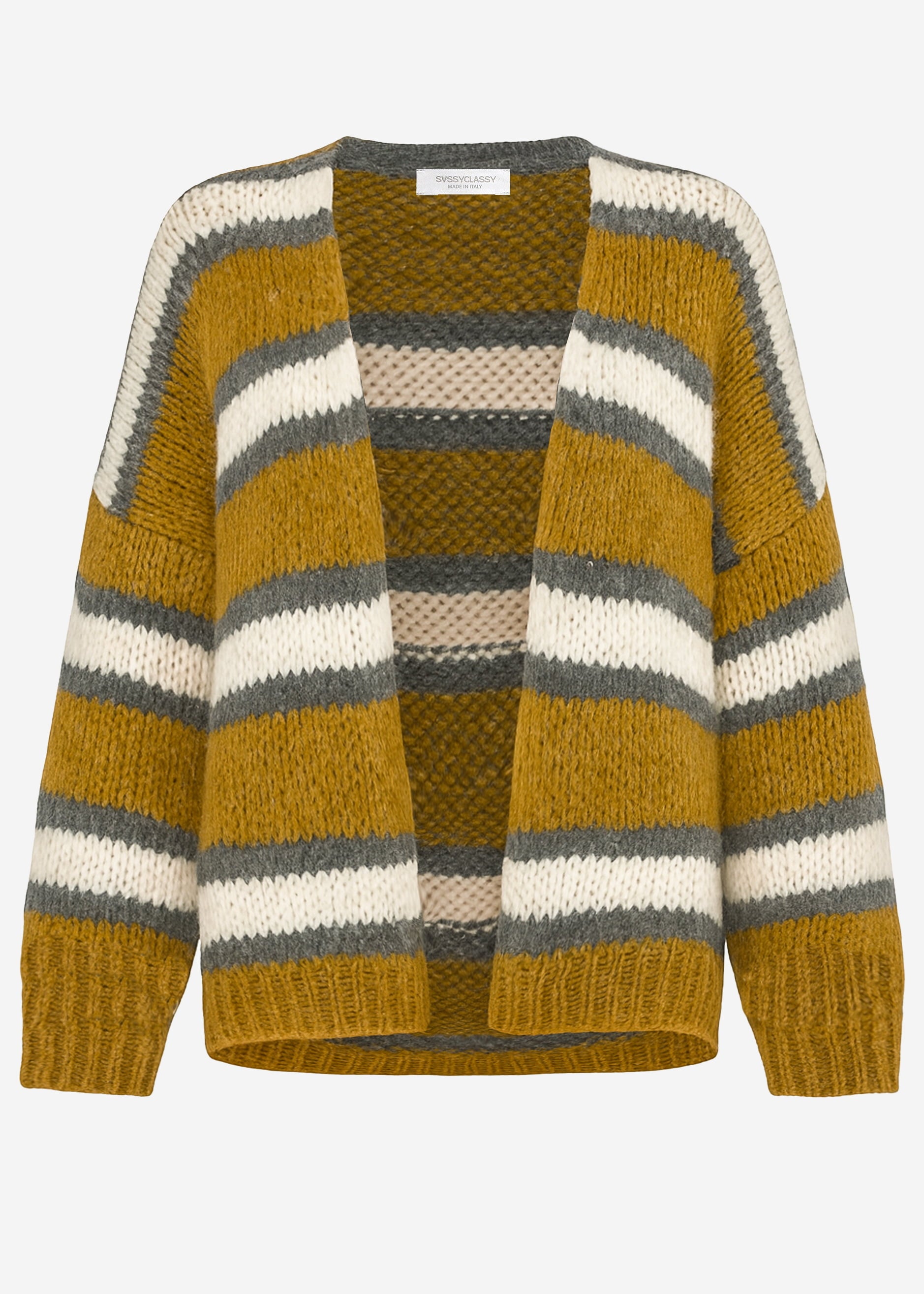 Grobstrick-Cardigan mit breiten Streifen und offener Front. Lockerer Oversize-Schnitt mit tief angesetzten Schultern für einen lässigen Fall. Weicher Grobstrick sorgt für einen gemütlichen Look.