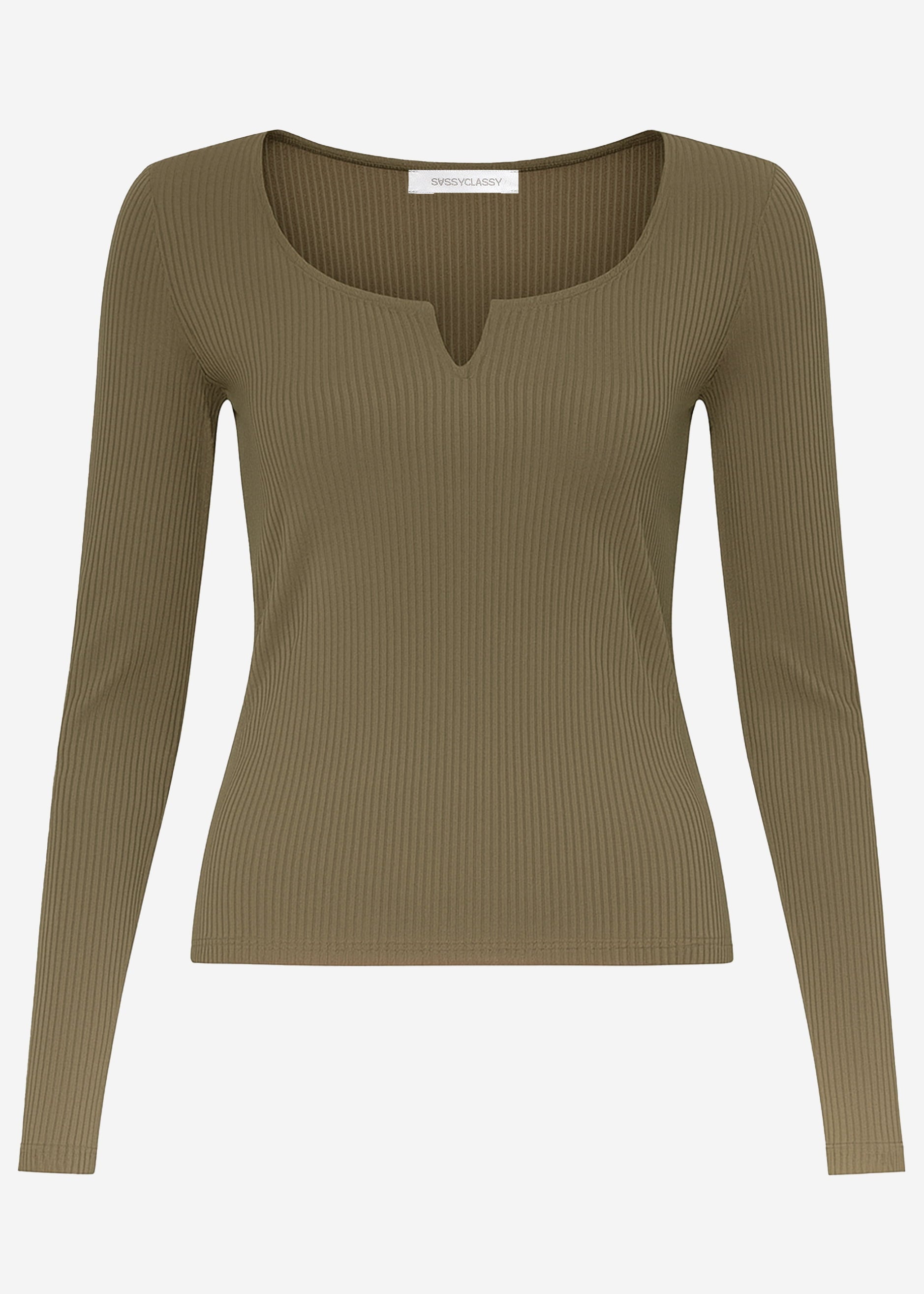 Geripptes Langarmshirt - khaki