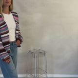 Dieser kuschelig-weiche Strickcardigan besticht durch sein markantes Streifenmuster und seine lockere, leicht verkürzte Passform. Die voluminösen Ärmel und der offene Frontschnitt sorgen für einen lässigen Look, während das flauschige Material angenehm wärmt. Er ist ideal zum Überziehen an kühlen Tagen und lässt sich perfekt mit Jeans oder Kleidern kombinieren, um einen modernen, entspannten Style zu kreieren.