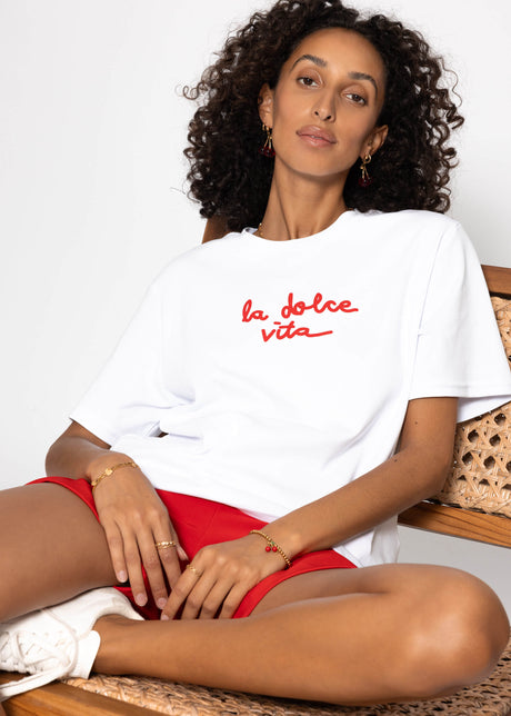 T-Shirt mit LA DOLCE VITA Print - weiß
