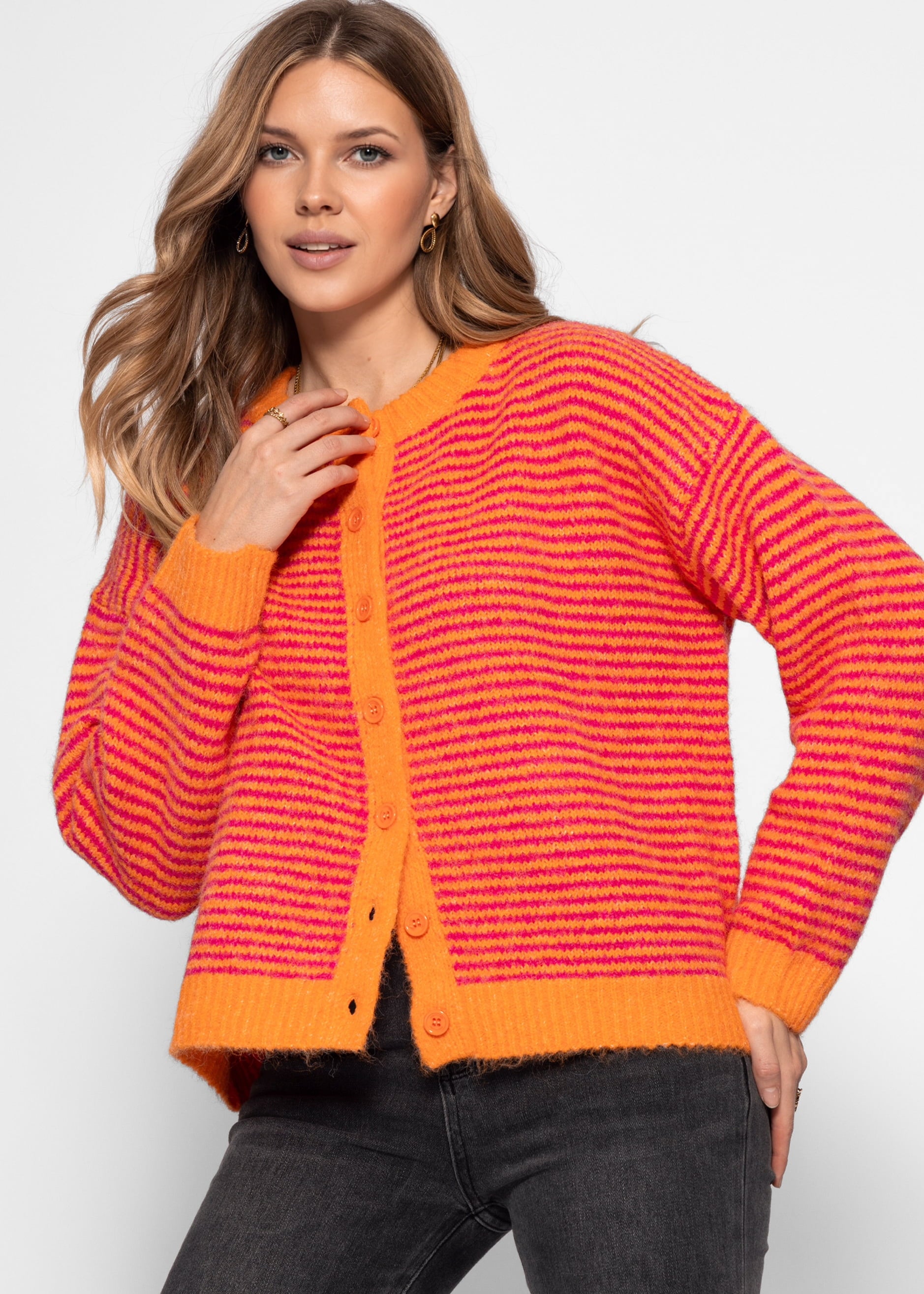 Gestreifter Cardigan - orange