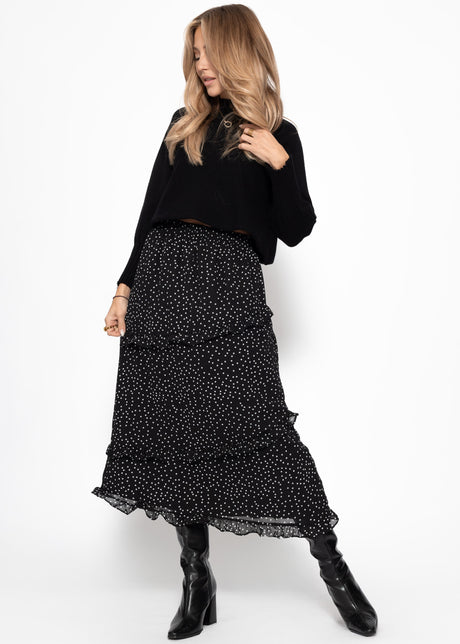 69,95€Grundpreis /Nicht verfügbarGepunkteter langer Chiffon Rock mit Rüschen - schwarz