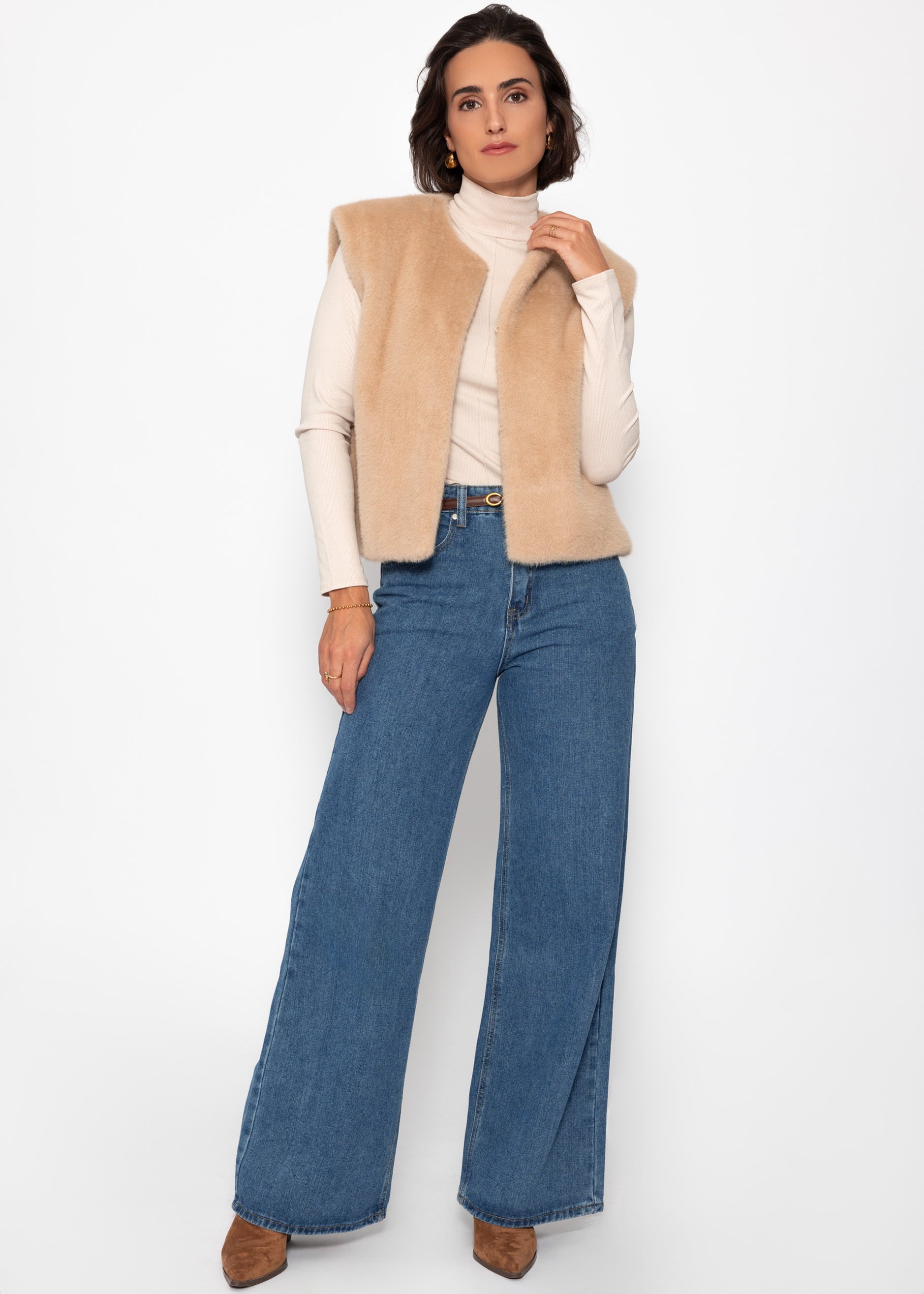 Langarmshirt mit Rollkragen und Biese - beige
