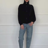 Dieser schwarzer Cardigan mit Reißverschluss überzeugt durch sein zeitloses Design und weichen Strick. Er wärmt zuverlässig an kühlen Tagen.