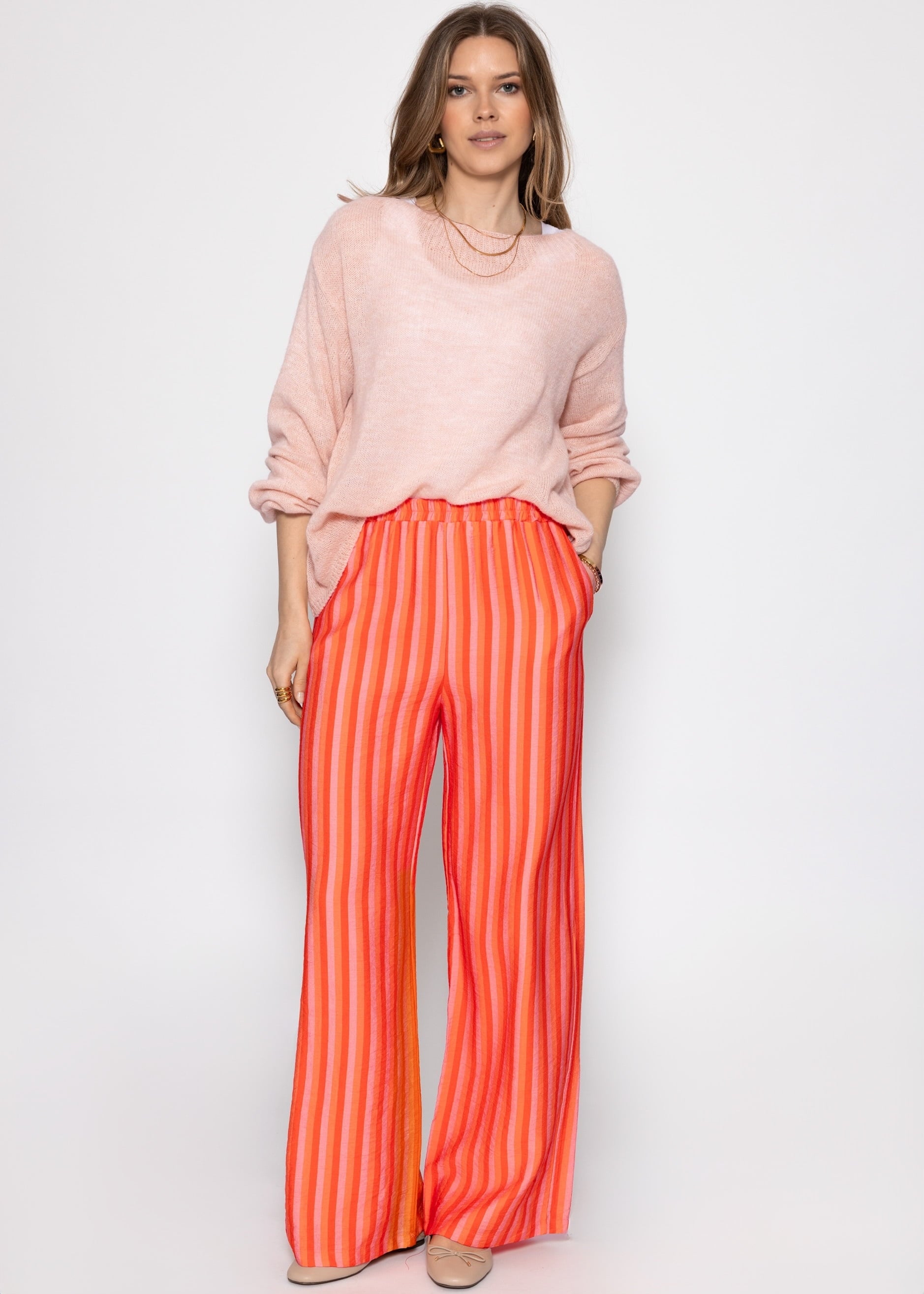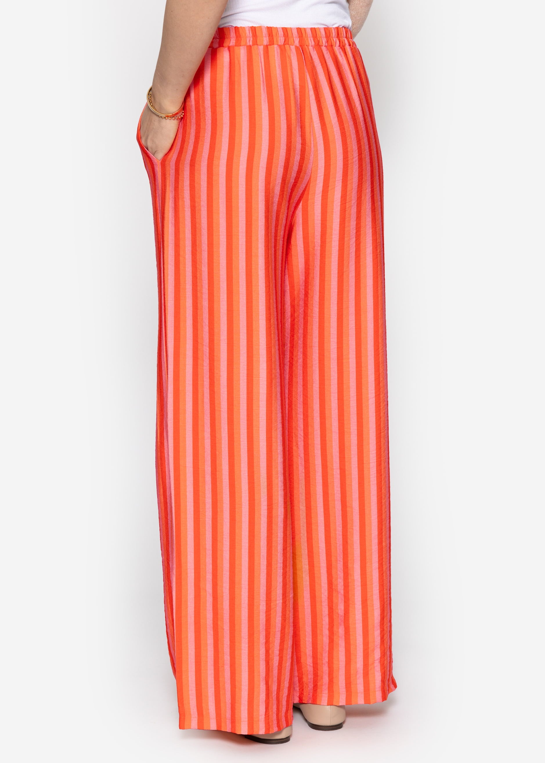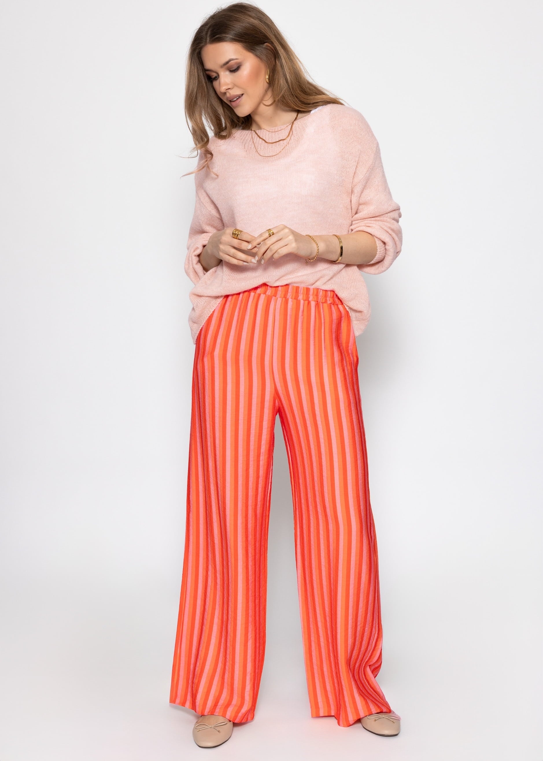 Gestreifte Hose aus Viskose - orange