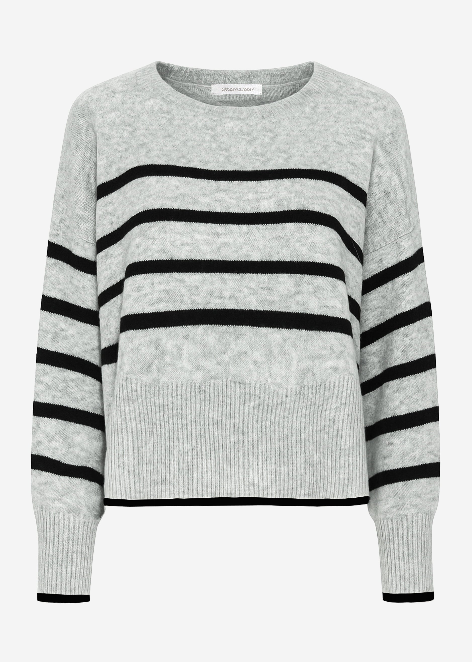 Gestreifter Strickpullover mit Seitenschlitzen - grau