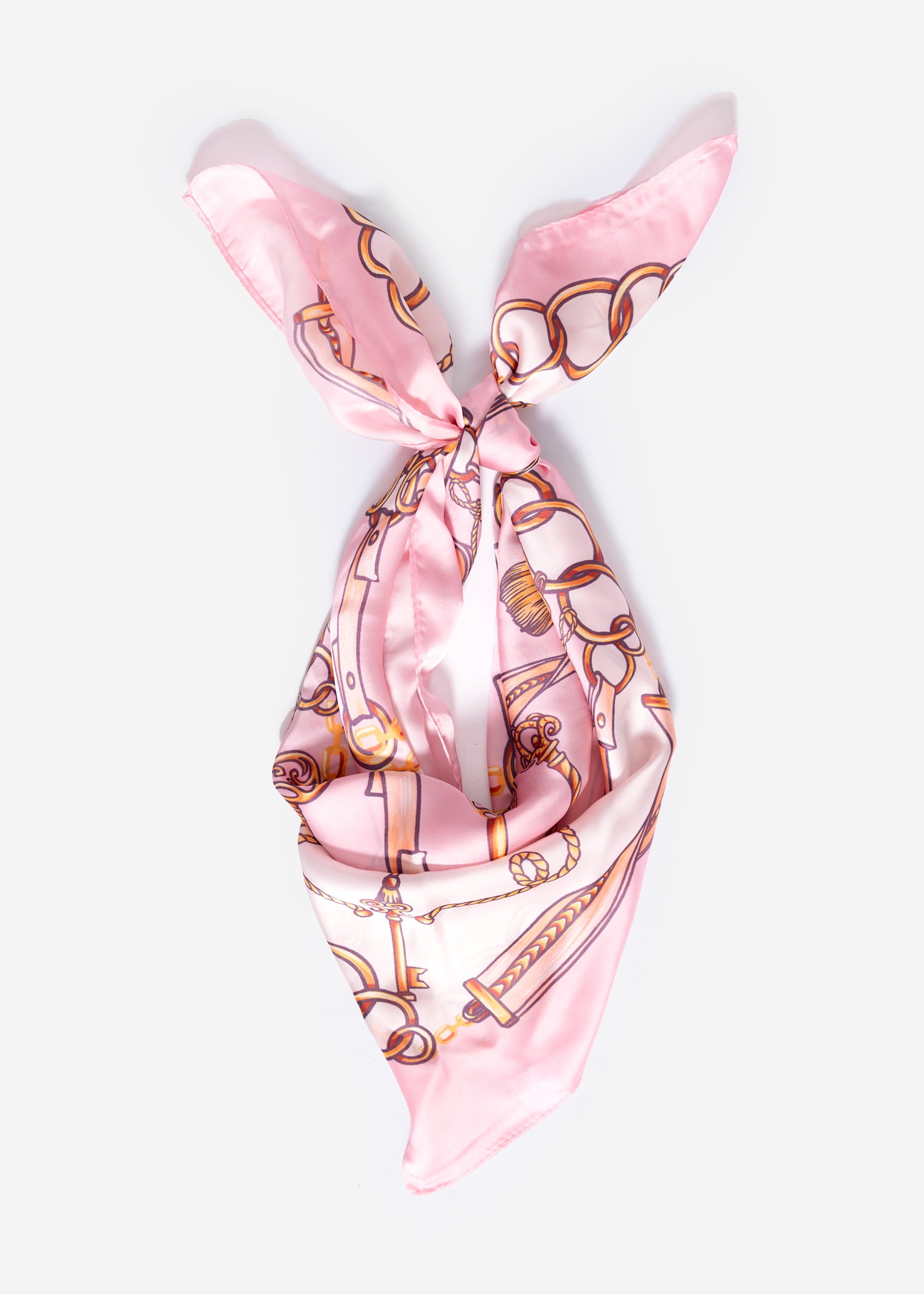Feines Halstuch in Rosa mit Print und Seidenanteil. Der glatte, leicht glänzende Stoff sorgt für eine hochwertige, elegante Optik, während der detailreiche Print dem Design eine zeitlose Note verleiht. Ein edles Accessoire mit angenehm weichem Griff.