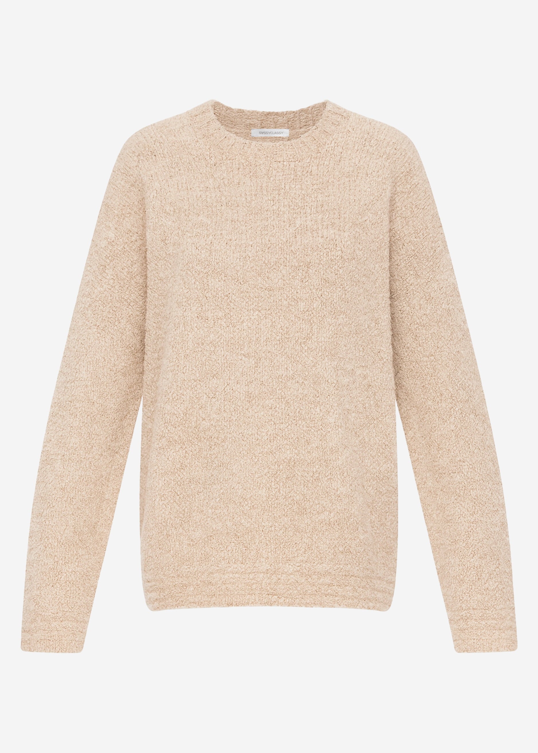 Co-Creation jennifer_abigail x SASSYCLASSY: Bouclé-Pullover mit Rundhalsausschnitt in Greige