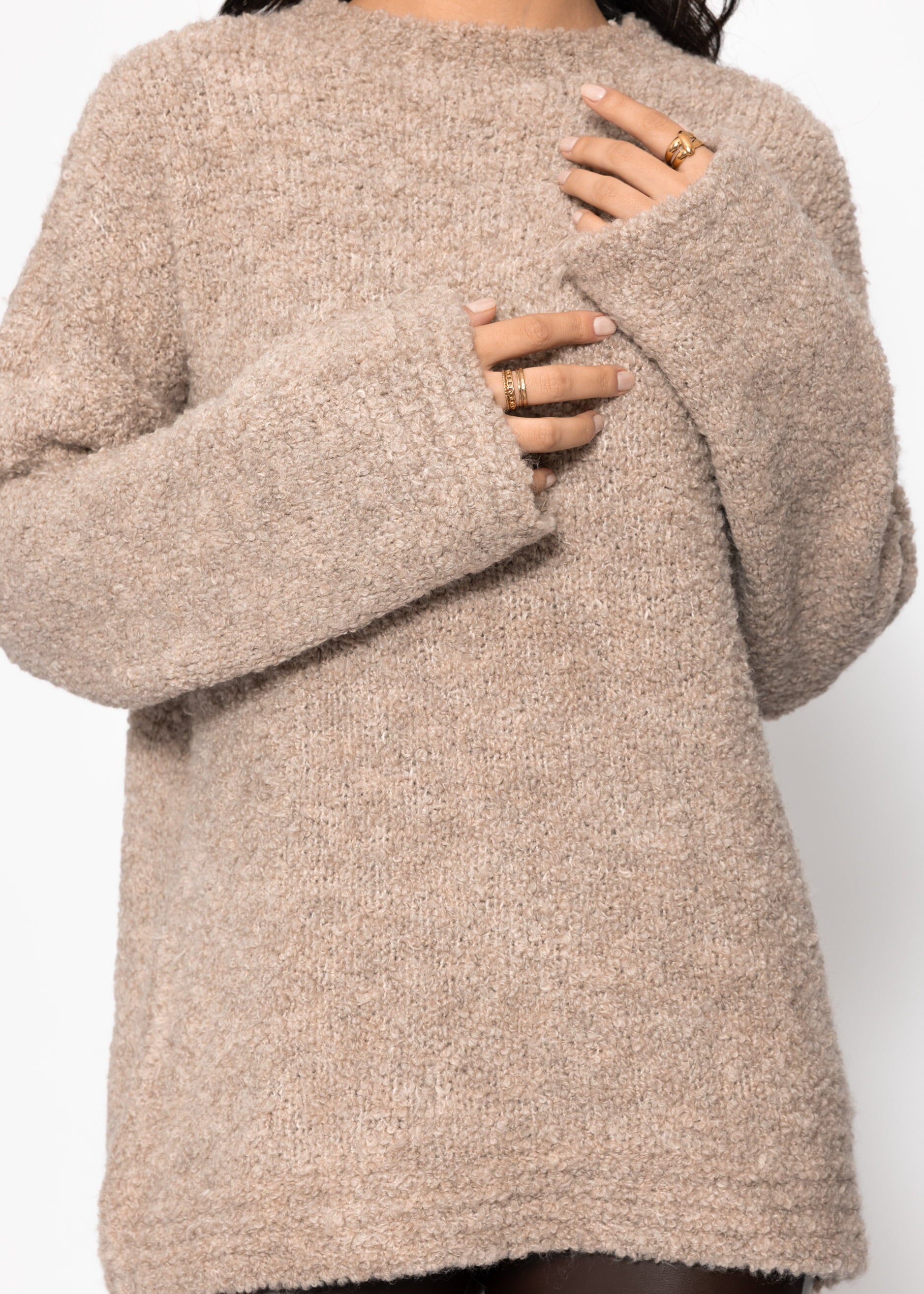 Bouclé-Pullover mit Rundhalsausschnitt - greige