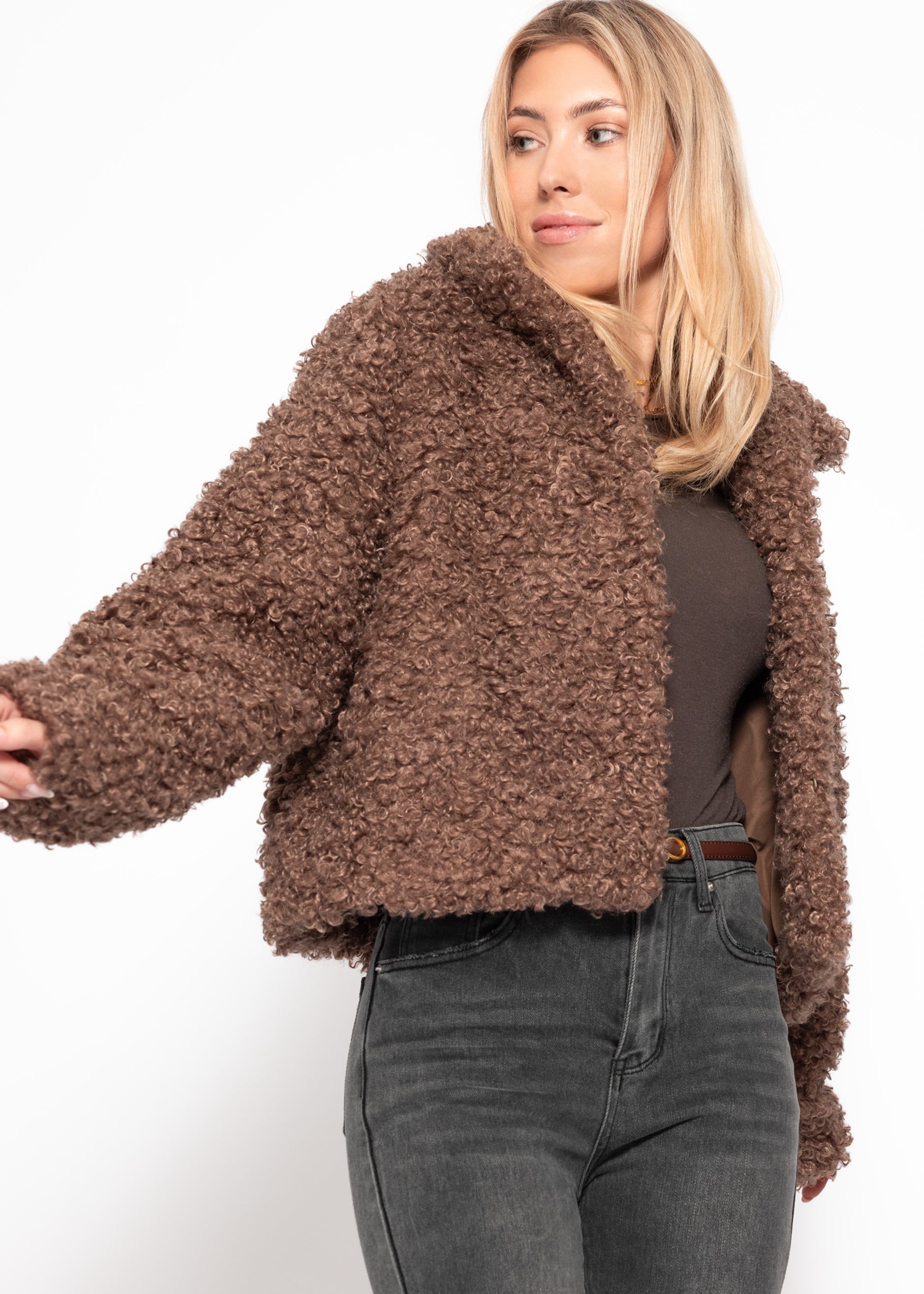 Diese kuschelige Teddyjacke ist ein absolutes Highlight für die kühle Jahreszeit. Das weiche, flauschige Material sorgt für ein angenehmes Tragegefühl und verleiht dem Look eine moderne, lässige Ausstrahlung. Dank des lockeren Schnitts und der leicht verkürzten Form lässt sich die Jacke vielseitig kombinieren – ob zu High-Waist-Jeans und Sneakern für einen entspannten Look oder als stilvoller Kontrast zu einem Kleid. Mit ihrem zeitlosen Design wird sie schnell zum Lieblingsstück im Alltag und bietet gleichzeitig Komfort und Wärme für Herbst und Winter.