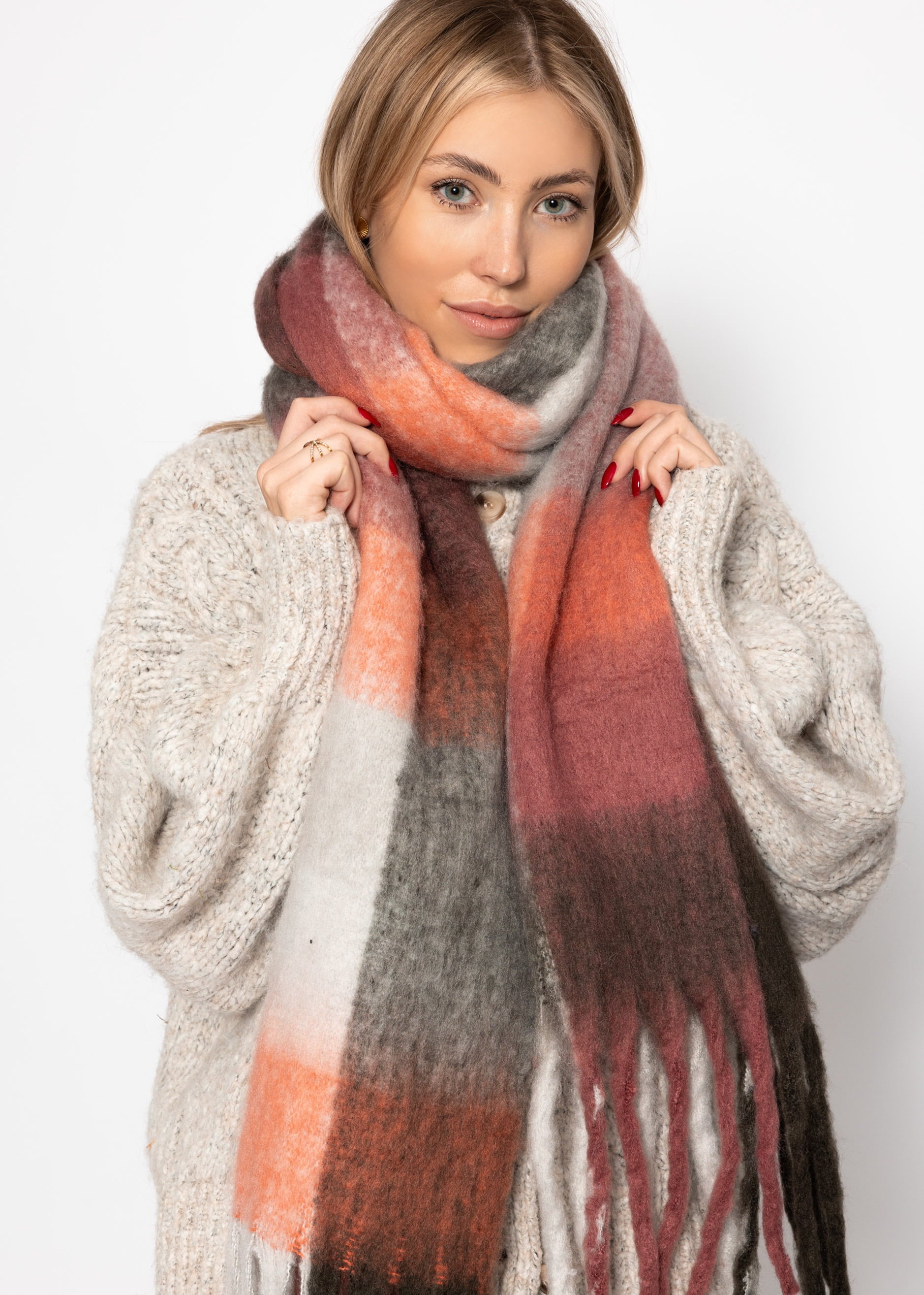 Dieser Schal bietet nicht nur Wärme und Komfort, sondern hebt deinen Stil auf ein neues Level. Das Modell besitzt ein angesagtes, kariertes Muster in verschiedenen Farben sowie Fransen an den Enden, das für visuelles Interesse sorgt und deinem Outfit eine auffällige Note verleiht. Hergestellt aus einem flauschigen Material bietet der Schal höchsten Tragekomfort sowie Schutz an kalten Tagen. Er trägt ein elegantes, qualitätvolles Label, das für einen Hauch von Luxus sorgt. Dieses hochwertige Accessoire verbindet Eleganz und Funktionalität auf geschmackvolle Weise und begleitet dich stilvoll durch den Winter.