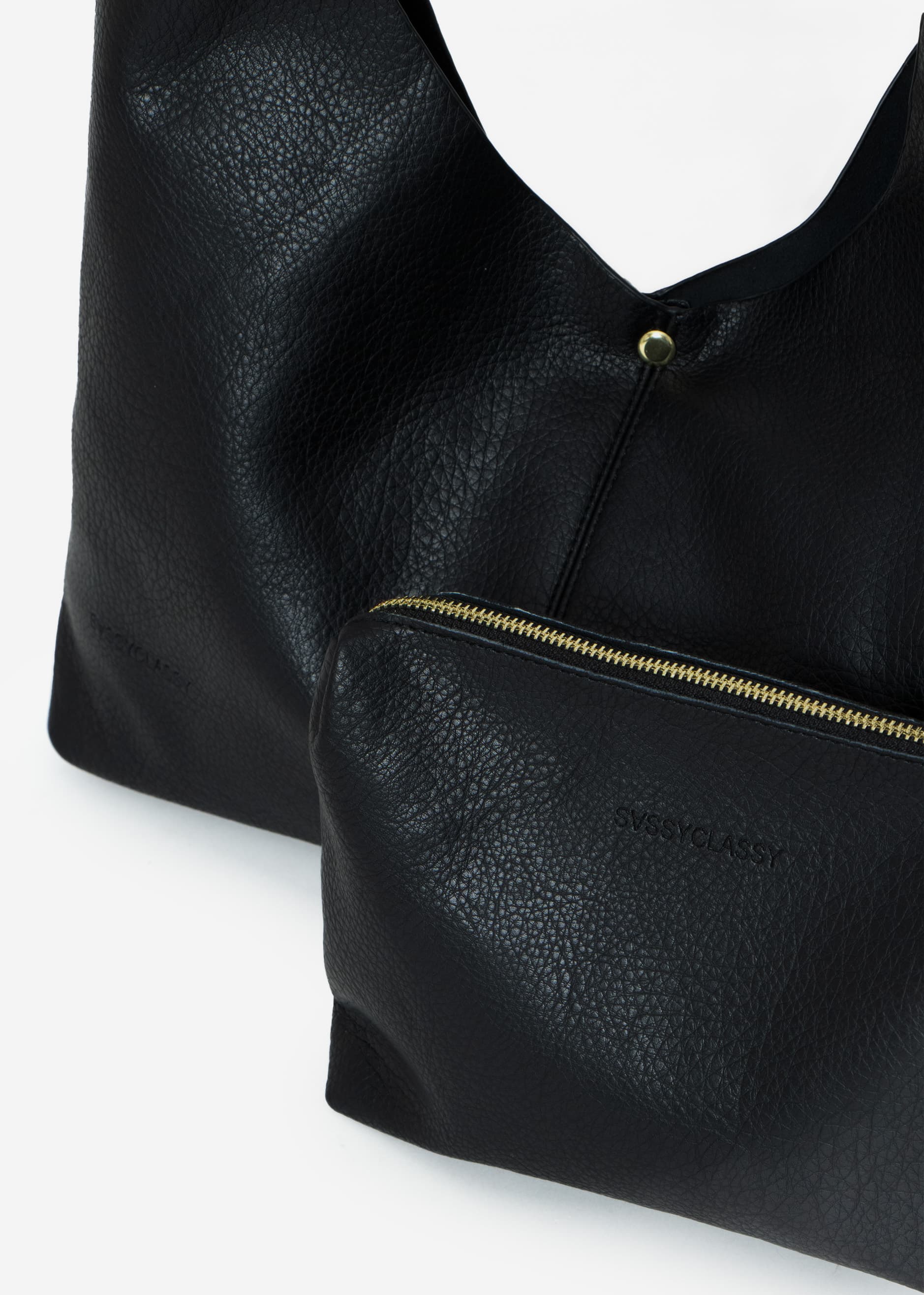 Diese modische Schultertasche ist der perfekte Begleiter für alle, die Wert auf Eleganz als auch Funktionalität legen. Mit ihrem geräumigen Hauptfach, das mit einem Druckknopf zu schließen ist, bietet sie ausreichend Platz für tägliche Essentials. Die geknoteten Details an den Riemenenden fügen dem Design eine zusätzliche Note von Raffinesse hinzu. Die Tasche zeichnet sich durch ihre weiche Silhouette aus, die für einen optimalen Tragekomfort sorgt. Das dezente SASSYCLASSY Logo, das für Qualität und Exklusivität steht, rundet das Design ab. Die Tasche wird durch ein charmantes, abgestimmtes Zusatztäschchen ergänzt.