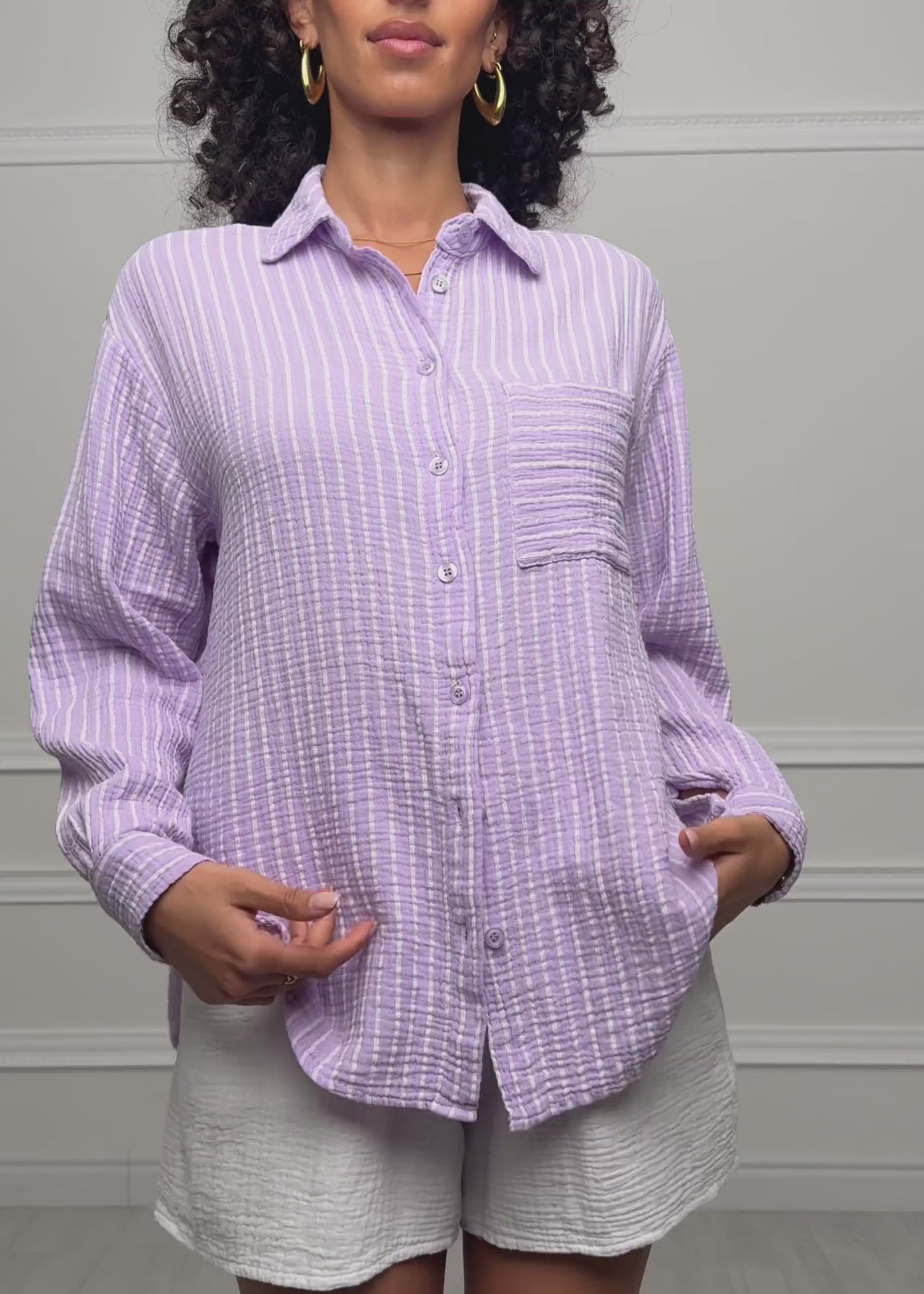 Gestreifte Musselin Hemdbluse in Flieder