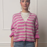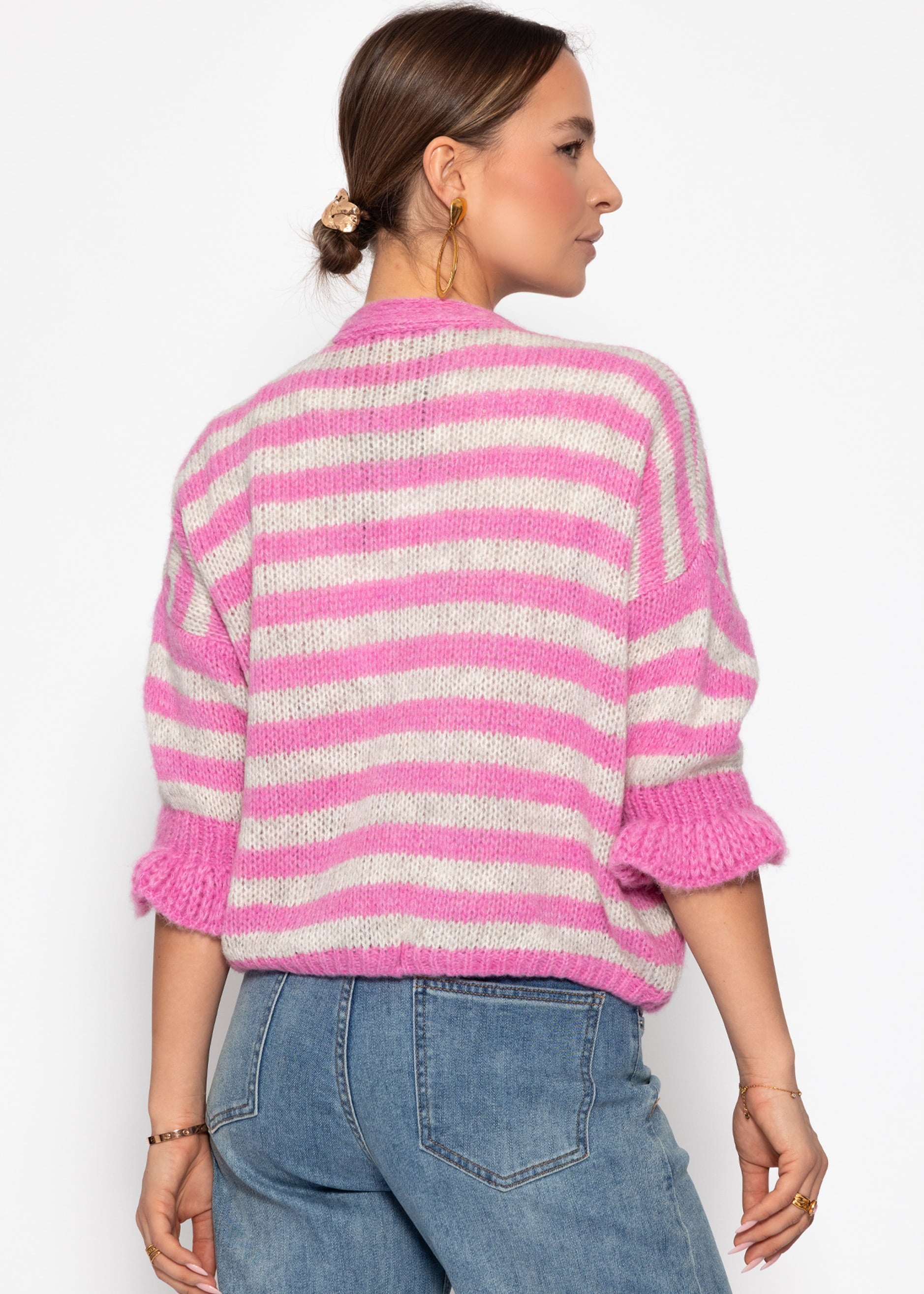 Gestreifter Cardigan mit 3/4-Ärmeln - pink