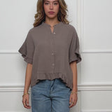 Musselin Bluse mit Rüschensaum - taupe