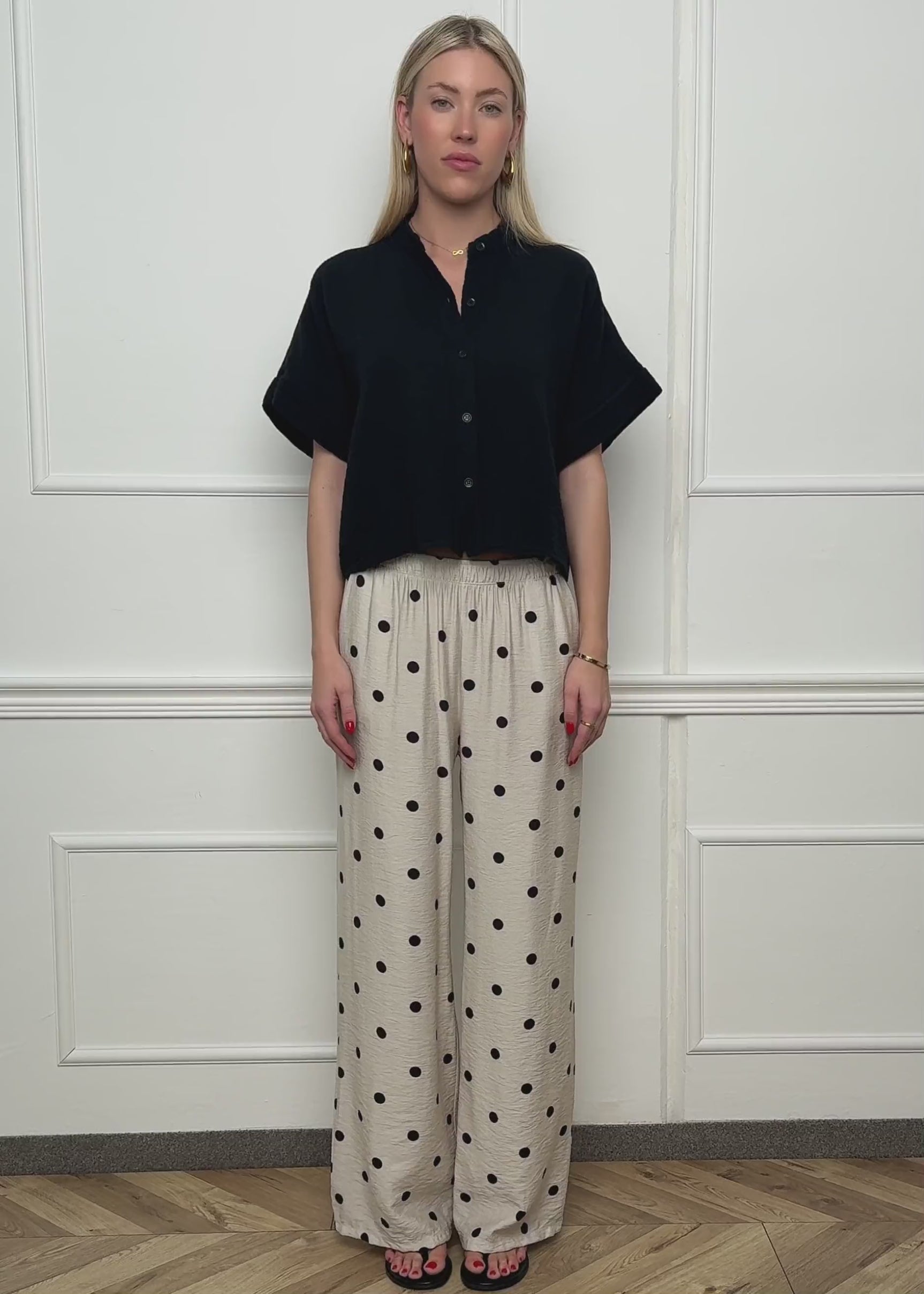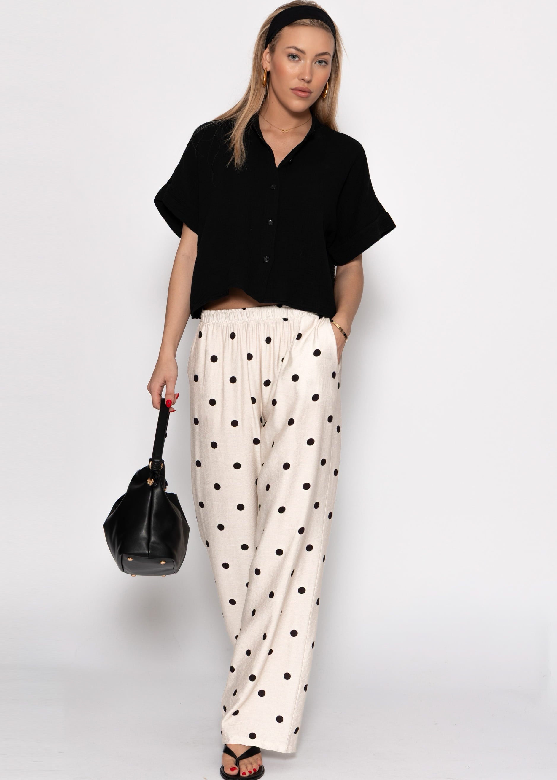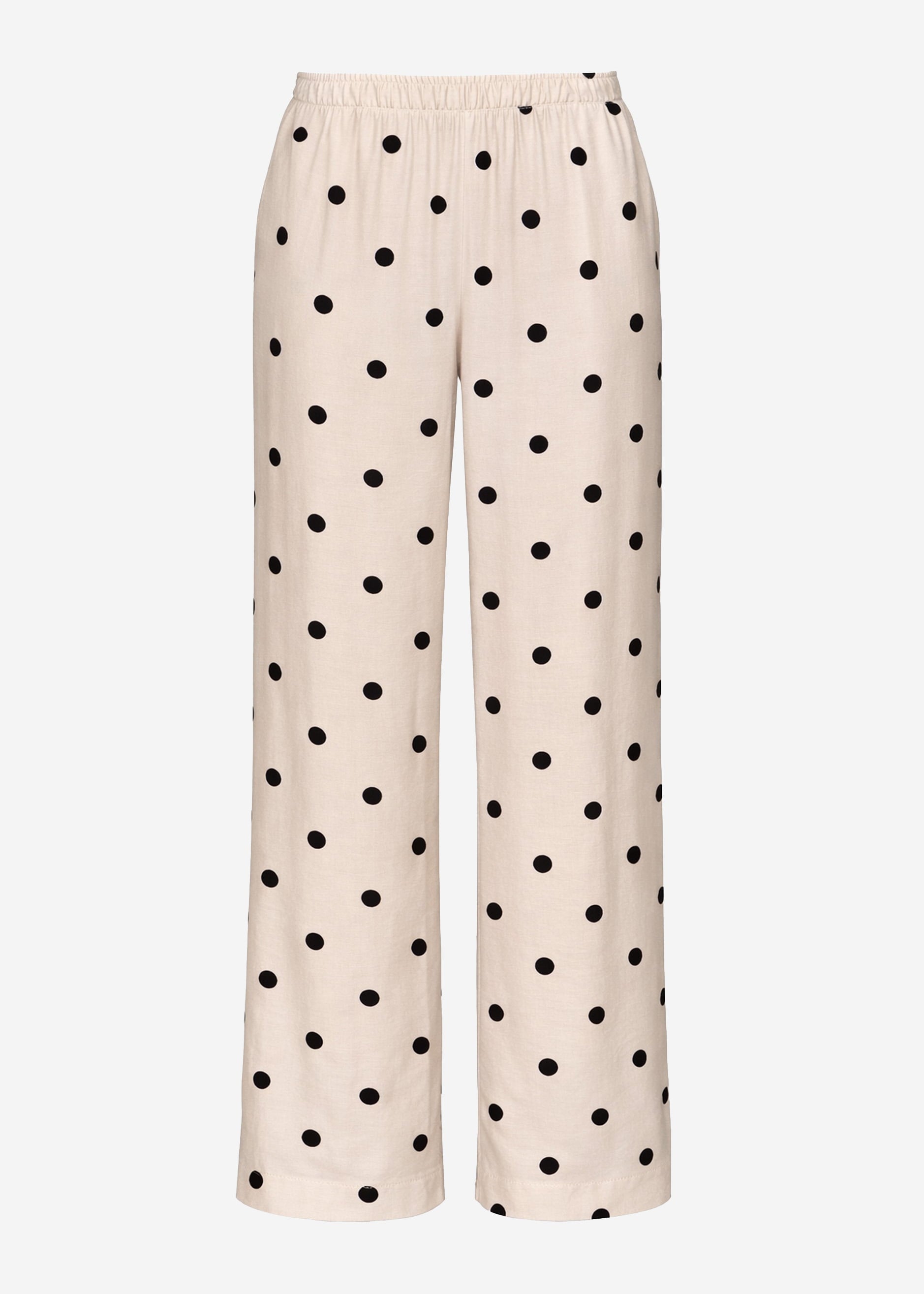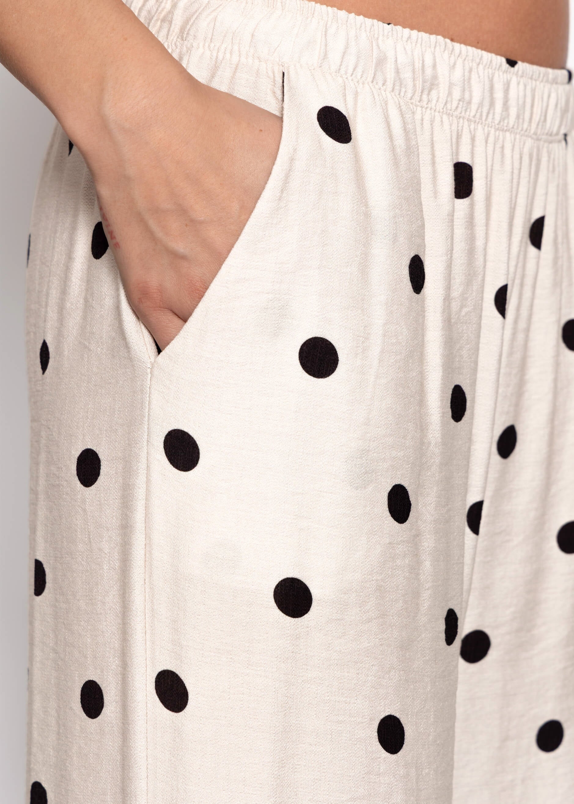 Gepunktete Hose mit weitem Bein in Hellbeige