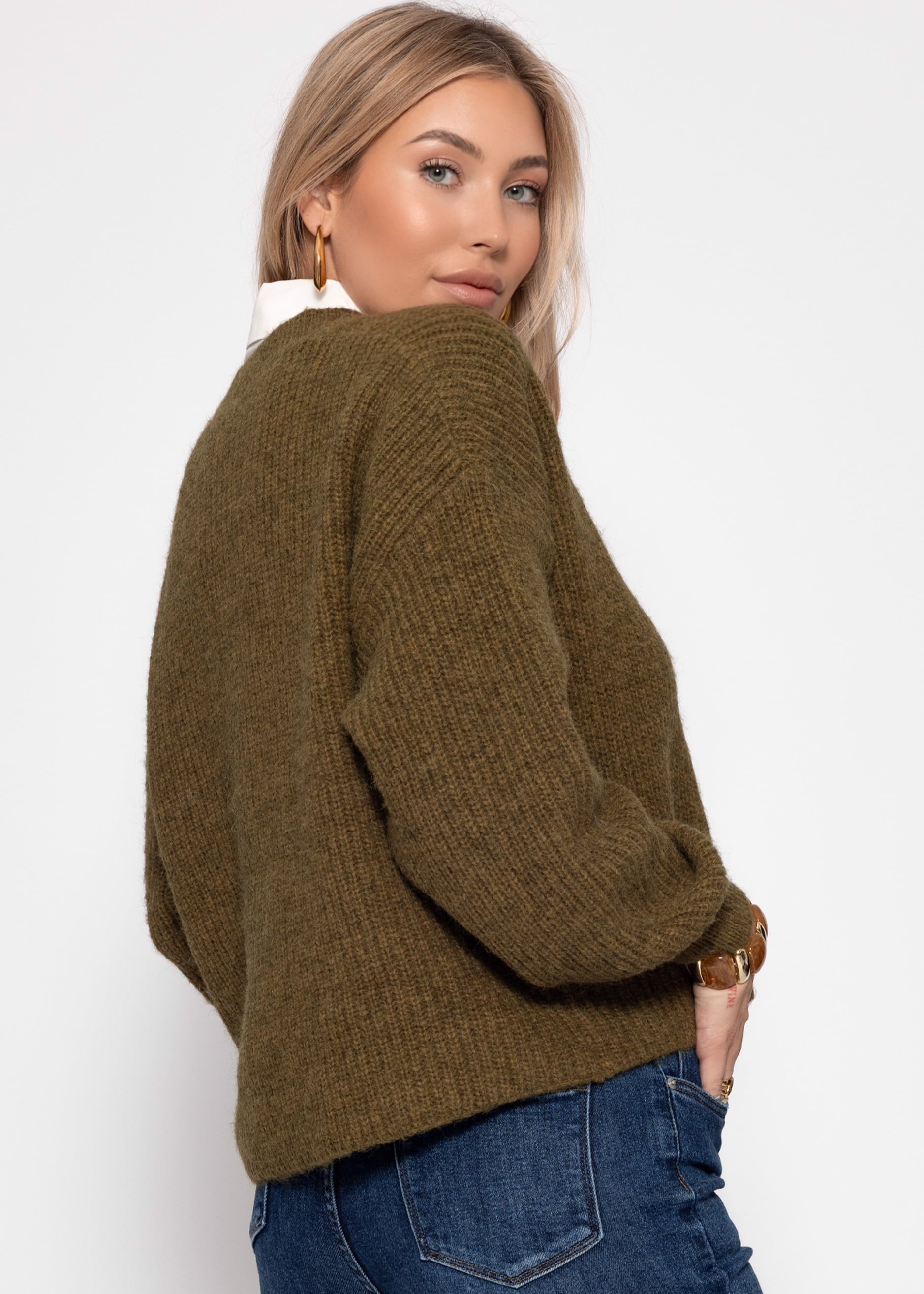 Cardigan mit Rundhalsausschnitt - khaki