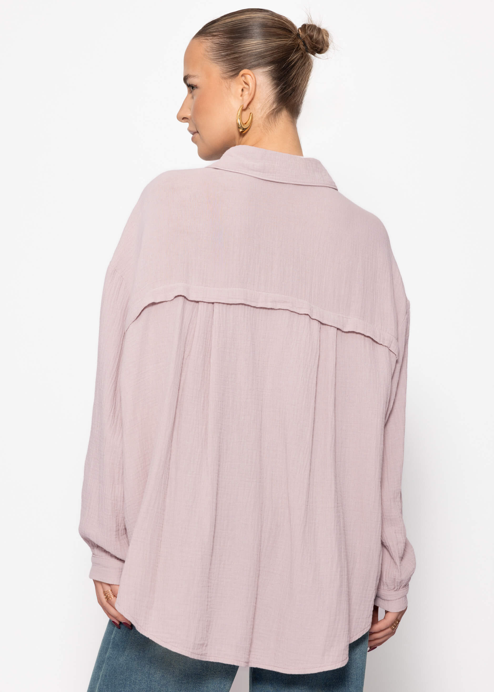 Muslin blouse oversize, short, powder pink