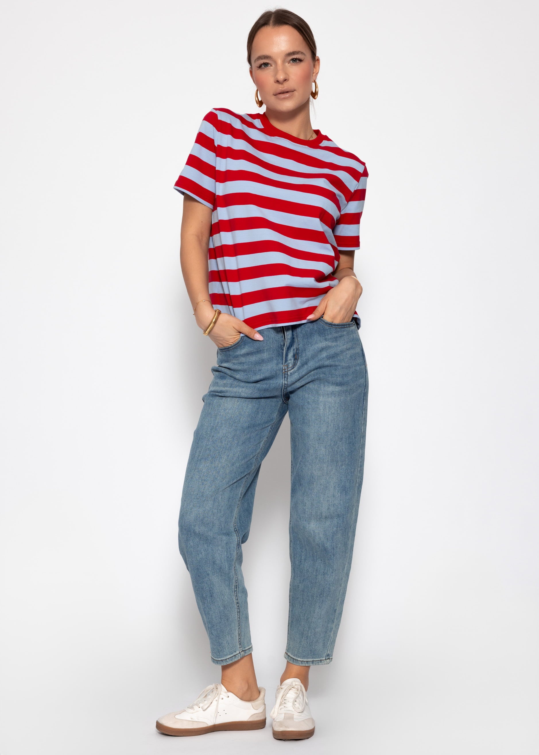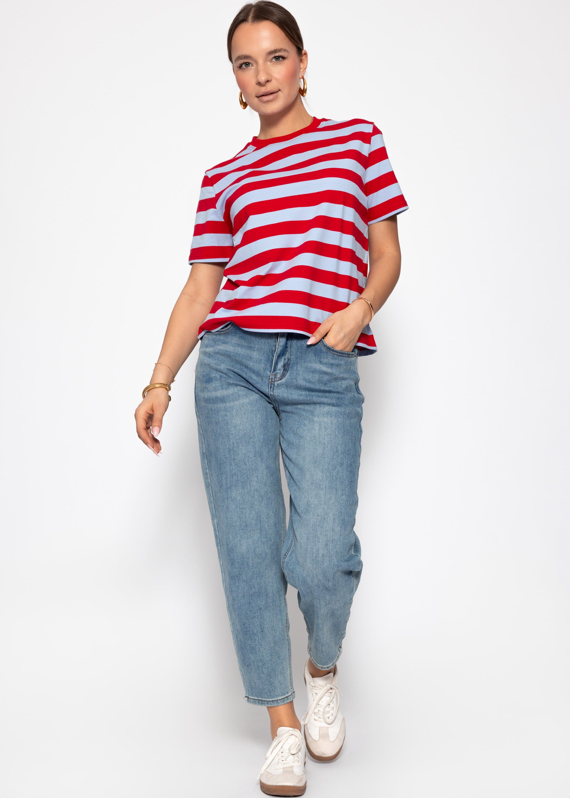 T-shirt with a wide striped pattern. Oversized cut with a round neck and short sleeves for a timeless look. Simple design and ideal as a versatile basic for everyday wear and leisure.