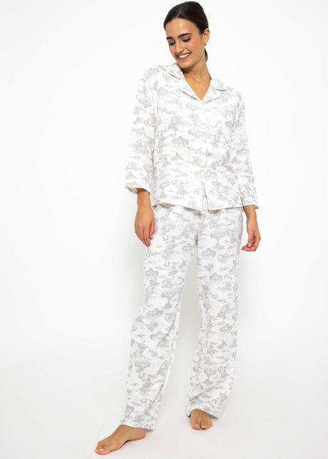 These pajama shorts feature a loose fit and an elastic waistband. The highlight is the stunning landscape print, which adds an idyllic touch. Made from high-quality cotton muslin, these sleep shorts offer excellent breathability. The SASSYCLASSY logo bow on the waistband adds a playful accent and gives these pajama shorts a distinctive touch. Paired with the matching short or long pajama shirt from the same series, these pajamas become a symbiosis of style and comfort.