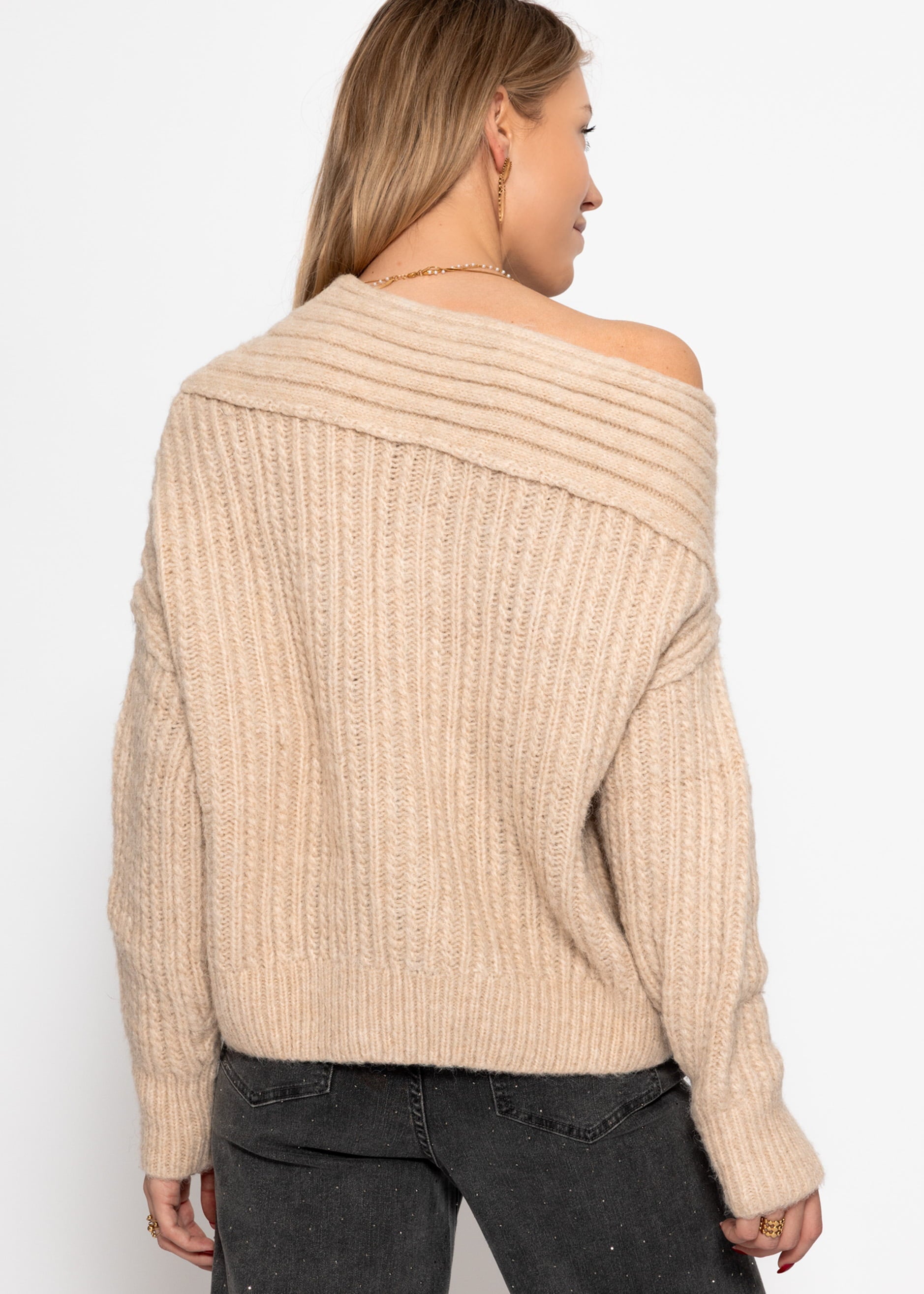 Experience ultimate comfort and cozy warmth with this sweater, which has an irresistibly soft and cosy texture. The style comes in a trendy oversized fit with dropped shoulders and ribbed cuffs on the long sleeves. The unique one-shoulder design gives the sweater a sophisticated touch and subtly highlights your shoulders. This sweater is the perfect piece to effortlessly upgrade your everyday look.