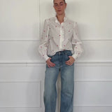 This charming blouse, crafted from high-quality cotton, combines timeless elegance with a touch of romance. The intricate heart embroidery adds a touch of love, while the classic collar, cuffs, and full-length button placket with delicate flounces add a feminine touch. The loose fit makes the blouse comfortable to wear and versatile—whether casual with jeans or chic with a skirt.